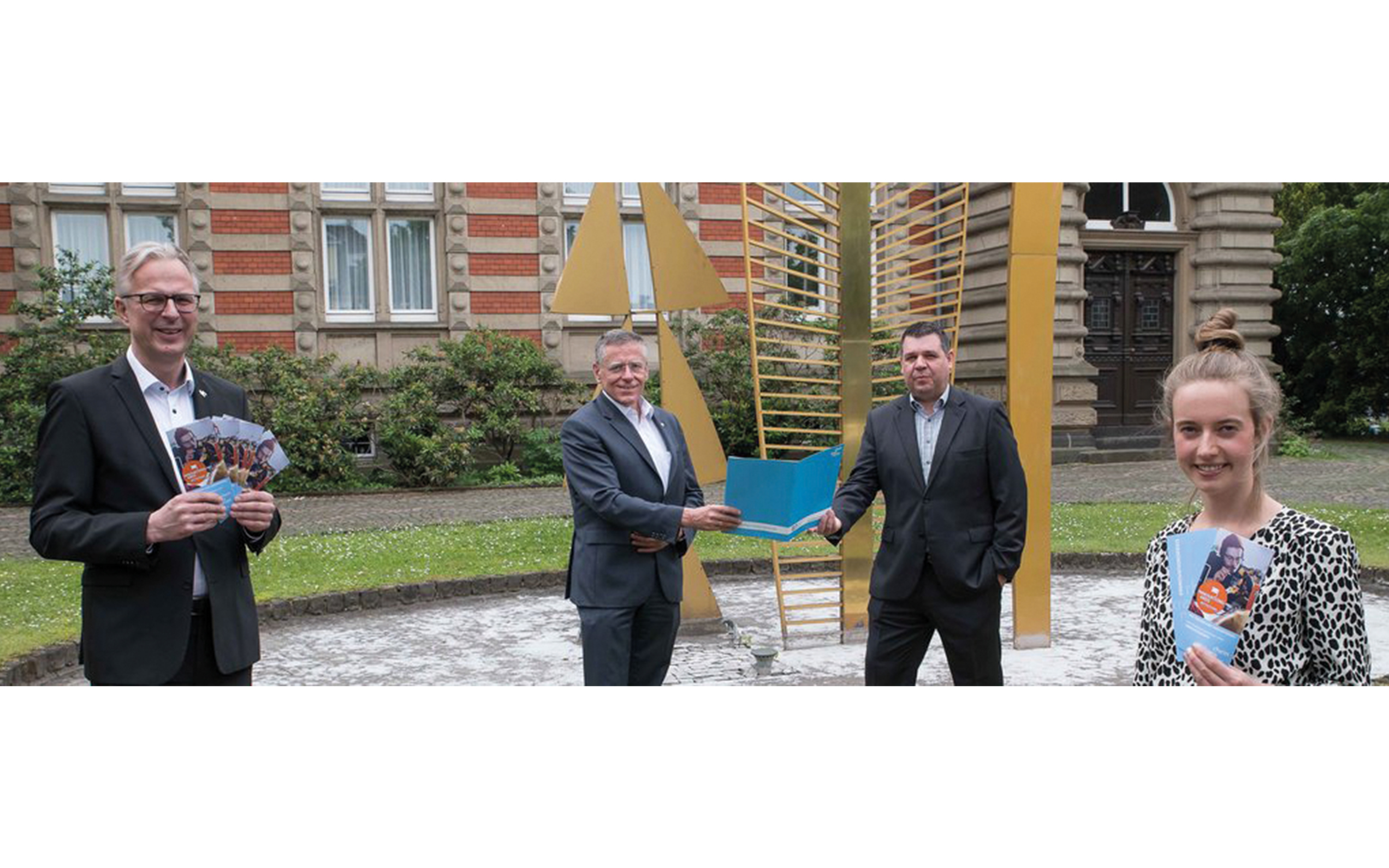 Das Förderprogramm „INNO-RKN“ hat einen weiteren Nutznießer: Alexander Rottels, Gründer und Inhaber des Online-Marketing-Unternehmens Stadtbekannt aus Neuss, nahm Anfang Juli einen Zuschussbescheid über 7.500 Euro von Landrat Hans-Jürgen Petrauschke, Kreisdirektor Dirk Brügge und Madita Beeckmann von der Wirtschaftsförderung entgegen. „Das vergangene Jahr hat gezeigt, wie wichtig es für Betriebe ist, auch digital sichtbar zu sein. Plattformübergreifende, stets aktuelle Informationen erhöhen ihre Auffindbarkeit“, so Petrauschke. So könnten die Bereitschaft, lokal einzukaufen, erhöht und der stationäre Einzelhandel unterstützt werden. Stadtbekannt hilft anderen Unternehmen dabei, ihre Präsenz in Online-Branchenbüchern, auf Bewertungsportalen und in sozialen Netzwerken zu verwalten. Auf nur einer Plattform können die wichtigsten Informationen wie Kontaktdaten und Öffnungszeiten zentral gepflegt werden. Die Software gleicht die Daten automatisch mit den verschiedenen Plattformen ab und aktualisiert diese bei Bedarf. Zudem haben Unternehmen die Möglichkeit, Kundenbewertungen an einem Ort zu überwachen und direkt zu reagieren, um ihre Reputation auch online zu schützen. Der Zuschuss des Rhein-Kreises Neuss hilft Stadtbekannt dabei, eine Machbarkeitsstudie anzufertigen. In ihrem Rahmen wird geprüft, ob die individuell erstellte Software zur vollständig automatisierten Kundenakquise erweitert werden kann. Zur Vorbereitung einer möglichen Umsetzung wird zudem ein Prototyp erstellt. „Die Corona-Krise hat gezeigt, dass bei vielen Unternehmen noch digitaler Nachholbedarf besteht. Wir freuen uns sehr über den Zuschuss, der es uns ermöglicht, unsere internen Prozesse weiter zu optimieren. Dadurch können wir auch den Betrieben noch einfacher dabei helfen, ihre digitale Präsenz auf- und auszubauen und somit die Kunden wieder mehr für den stationären Handel zu begeistern“, so Rottels.