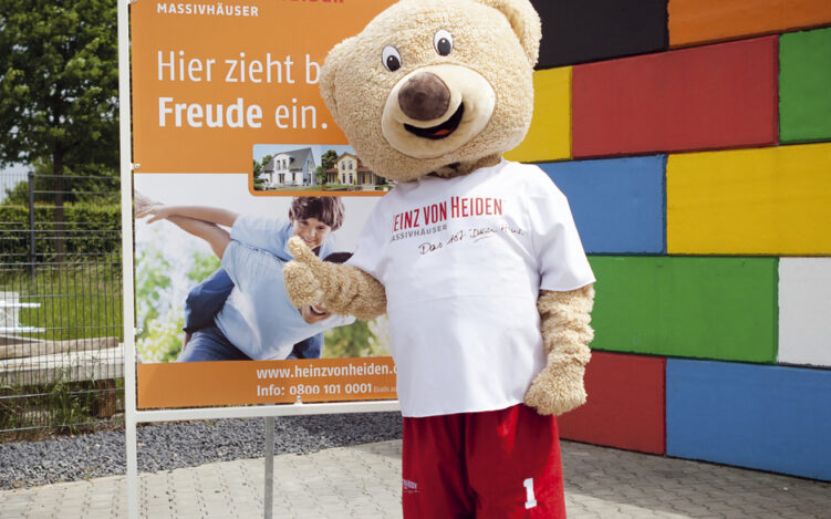 Überraschen dürfte viele Kunden die Herkunft des Maskottchens „Heinzi“. Man mag es kaum glauben, aber der putzige Bär wurde von SIGN+DESIGN® konzipiert und damit zum Leben erweckt. „Wenn Heinzi Hand in Hand mit dem 96-Maskottchen Eddi in die HDI Arena in Hannover einläuft, schauen mehrere Millionen Menschen zu, doch niemand weiß, dass der Teddy im Ortsteil Waldniel geboren wurde“, sagt Uwe Bergh mit einem Augenzwinkern. Dass seine Agentur für direkte Marktkonkurrenten arbeitet, stellt für seine Kunden übrigens kein Problem dar: Diskretion hat schließlich oberste Priorität. „Wir sind wie das Schweizer Taschenmesser der Werbebranche: Zum einen sind wir neutral, zum anderen halten wir für jede Marketingsituation das richtige Werkzeug bereit.“
