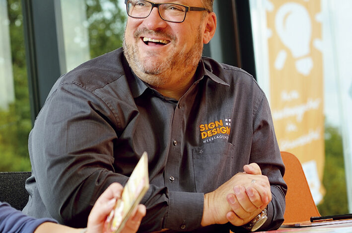 Wer schon einmal den Bau einer McDonald‘s-Filiale beobachtet, die HDI Arena in Hannover besucht oder als Vier-Sterne-General an einer Veranstaltung des NATO-Kompetenzzentrums CCOE teilgenommen hat, ist ihm mit hoher Wahrscheinlichkeit bereits begegnet: dem kreativen Output von SIGN+DESIGN®. Die unkonventionellen Konzepte und Ideen aus Schwalmtal bringen große Player auf ihren jeweiligen Märkten nach vorne und sind im gesamten Bundesgebiet zu entdecken. „Wir sind der David, dem die Goliaths dieser Welt vertrauen“, sagt Geschäftsführer Uwe Bergh und zieht damit einen treffenden Vergleich. Sein Team ist verhältnismäßig klein und kennt das Gefühl, unterschätzt zu werden. Gleichzeitig überraschen die Werbeprofis aber immer wieder mit Einfallsreichtum und Mut. Anders als die biblische Figur setzt SIGN+DESIGN® seine Waffe jedoch nicht gegen, sondern für Goliath ein; statt Steine schleudern die kreativen Köpfe Ideen.