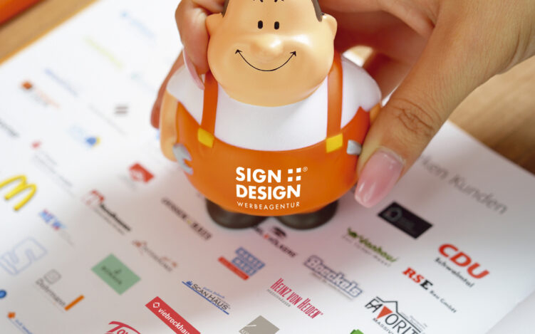 Übrigens: Wenn SIGN+DESIGN® die Ideenmaschine anwirft, muss der Neukunde nicht zwangsläufig gleich bezahlen. „Es ist fest in unserer Philosophie verankert, dass wir zunächst die Aufgabenstellung des Kunden lösen, unser Konzept vorstellen und ihm einen Preis nennen. Erst dann entscheidet er.“ Dabei können die Werbeprofis ganz entspannt ans Werk gehen. Da SIGN+DESIGN® Marktführer im Bereich Mietbauschilder ist, verfügt das 50 Mitarbeiter starke Unternehmen über ein zweites Standbein. Der damit verbundene finanzielle Freiraum ermöglicht es dem 16-köpfigen Team der Werbeagentur, sich genügend Zeit für die Ausarbeitung seiner Denkansätze zu nehmen. Ohne wirtschaftlichen Druck im Nacken können Ideen bis zur Perfektion ausgearbeitet und auch mal unkonventionelle Konzepte ausprobiert werden.