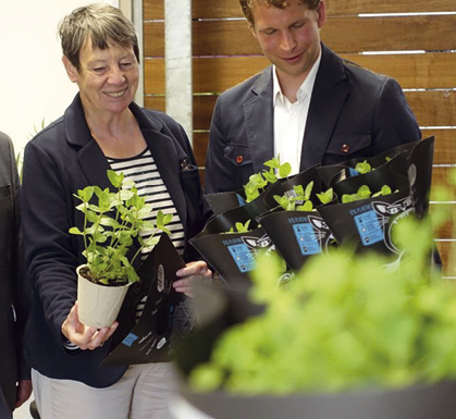 Da kommt eine motivierende Unterstützung aus der Politik gerade recht. Vor einigen Monaten besuchte die ehemalige Bundesumweltministerin Dr. Barbara Hendricks die Pflanzengroßhändler in Straelen und wurde ein neuer Fan des innovativen Kräuterkonzeptes mit dem doppeldeutigen Namen „Schnauze voll!“, das komplett auf Plastik verzichtet. „Unsere Küchenkräuter sollen natürlich hervorragend schmecken, aber zusätzlich auch ökologisch vorbildlich sein. Wir hatten davon die Schnauze voll, dass bei der herkömmlichen Kräuterauslieferung in Plastiktöpfen und Schutzfolie eine Menge unnötiger Kunststoffmüll entsteht.“ Bei Cox werden die Kräuter jetzt in recycelbaren Papptöpfen geliefert und von Papierhüllen geschützt, die auch noch innovativ bedruckt werden können. Ein Marketingkonzept, das beispielhaft ist für viele der frischen Ideen der Niederrheiner. Nachhaltigkeit wurde dem Konzept nicht zuletzt auch mit dem Gewinn des „Taspo Award“ verliehen.