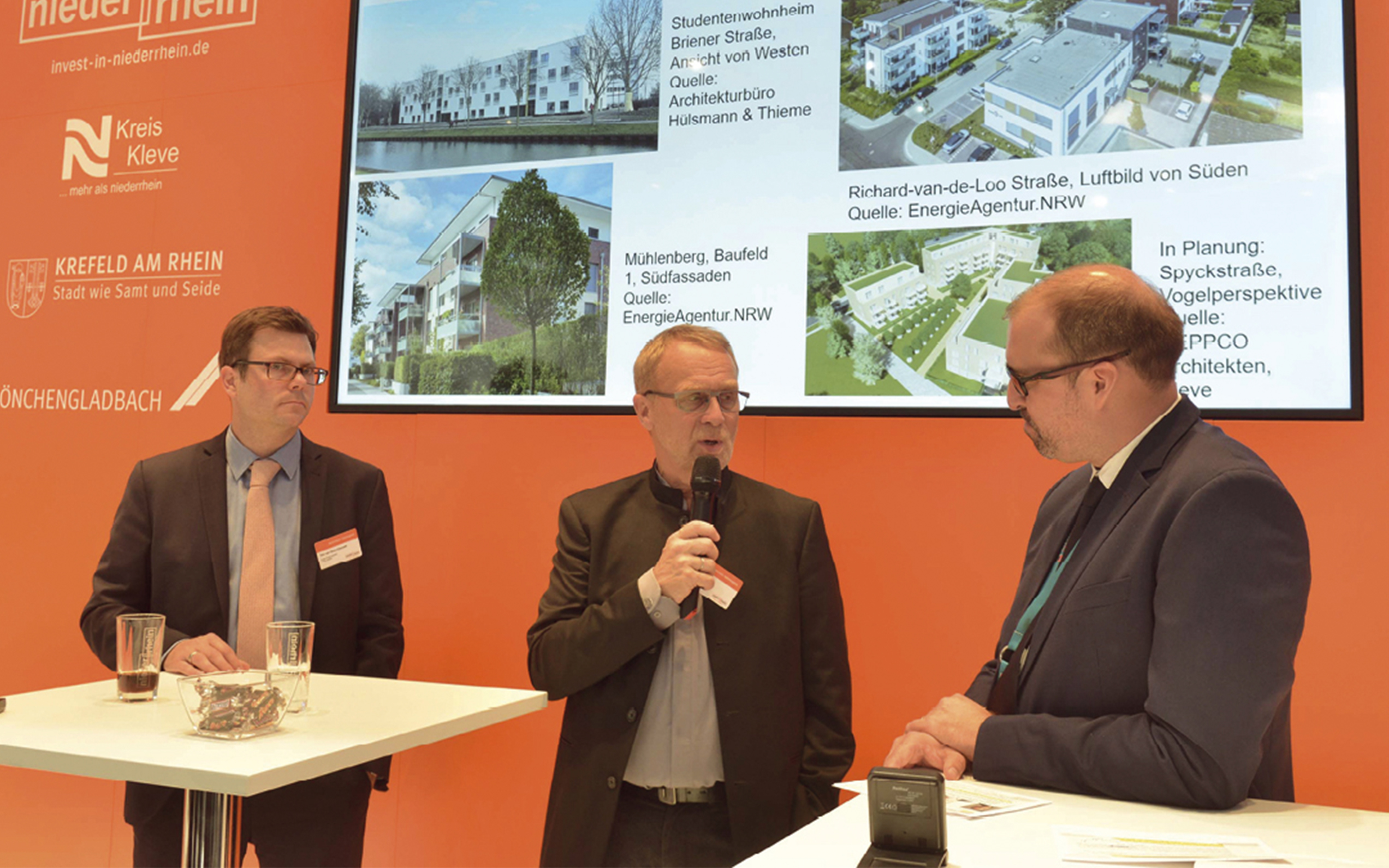 An der diesjährigen Immobilienmesse Expo Real haben auch Vertreter der Wirtschaftsförderung Kreis Kleve GmbH teilgenommen. Bei der Messe, die vom 7. bis 9. Oktober in München stattfand, präsentierten sich beispielsweise alle Lebensmittelhändler der Republik. Für Kreis-Wirtschaftsförderer Hans-Josef Kuypers gab es gleich drei Standortwünsche für überschaubare Discounter. Da die Standorte allerdings „hier und da mit örtlichen Einzelhandelsgutachten kollidieren, wird man zunächst mit den Bürgermeistern Kontakt suchen“, hieß es auf der Messe. „Wir sehen uns heute auch Standorte an, die lediglich 2.500 Einwohner haben“, ergänzte ein Vertreter der Supermarktkette Norma. Auf der Messe überlegten die Wirtschaftsförderer auch, wie sie Bahnhöfe revitalisieren können. Von Sale-and-Lease-Back-Verfahren bis hin zu konzertierten Aktionen von Öffentlicher Hand und privaten Investments reichten die Ideen. Bereits seit der Vorjahres-Messe ist das Team der Wirtschaftsförderung Kreis Kleve in Gesprächen mit einer Investorengruppe, die seit Längerem sogenannte Inklusionshotels realisiert. Zusammen mit heimischen Partnern sollen sozialversicherungspflichtige Arbeitsplätze für Menschen mit Behinderung in einem qualitativ hochwertigen Hotelbetrieb entstehen. „Es ging im Gespräch auf der Expo Real auch darum, einen Standort zu definieren“, so die Kreis-Wirtschaftsförderer. Und noch weitere Unternehmer zeigten Interesse an der Region. Derzeit sucht ein Stahlbau-Unternehmen im Kreisgebiet einen 5.000 Quadratmeter großen Gewerbegrund. Und ein Projektentwickler entwickelt Gewerberaum in größeren Strukturen ab 100 Quadratmetern als Zentren für das Handwerk, um diese einzeln zu veräußern.