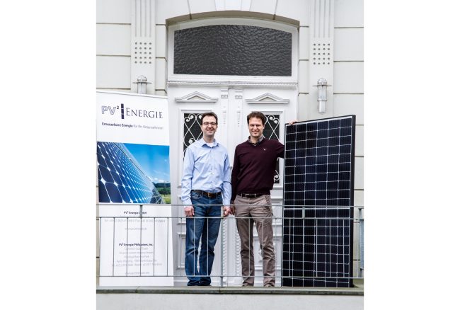 Erneuerbare Energien im Kontext des Energiepreishochs. Die niederrheinischen Solarprojektierer Phillip Küpper und Chris Hannen, Geschäftsführer der Firma PV2 Energie GmbH,...