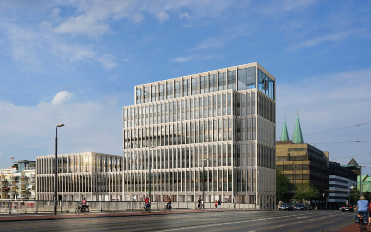 Darauf kann sich auch die Kühne + Nagel International AG verlassen: Für den Logistik-Riesen realisiert HELLMICH im Moment den Büroneubau des August-Kühne-Hauses in Bremen, den Stammsitz des Unternehmens. Das ehrwürdige Gebäude wurde 1962 erbaut und 1972 um drei Geschosse erweitert. Dennoch ist der Platz mittlerweile zu knapp geworden, sodass ein Neubau erforderlich ist. Der Standort soll als Sitz der Region Nord von Kühne + Nagel Deutschland fungieren und rund 725 Mitarbeitern Platz bieten. Die Fertigstellung ist für die zweite Jahreshälfte 2019 geplant; das Gebäude wird dann schlüsselfertig übergeben.