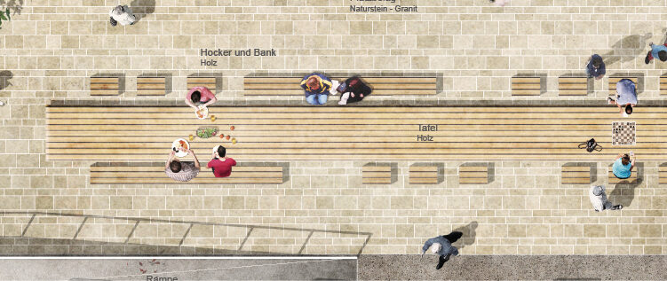 Konkret: Nachdem der Kaiserplatz in Willich als Ergebnis eines Wettbewerbs als erster Baustein zu einem attraktiven Stadtplatz mit hoher Aufenthaltsqualität umgestaltet worden ist, wird derzeit auch der Marktplatz an der Kirche nach dem Ergebnis eines Werkstattverfahrens und vor allem dank eines Votums der Willicher Bürgerinnen und Bürger zu einem autofreien, einladenden Ortsmittelpunkt umgestaltet. Hier soll zum einen Raum und Potenzial für vielfältige Gastronomie geschaffen werden, andererseits wird auch der Aufenthalt unter Bäumen und angstfreies Kinderspielen möglich. Abwechslungsreiche Ausstattungsmerkmale wie ein Fontänenfeld oder die „Lange Tafel“ sollen die Kommunikation zwischen Jung und Alt fördern.
