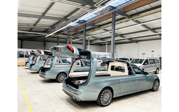 „Während hierzulande vor allem Vans gefragt sind, weht im Ausland ein ganz anderer Wind.“ So wünschen die Angehörigen in Nigeria zum Beispiel, den Verstorbenen auf seiner letzten Reise im Fahrzeug zu begleiten. „Außenlängen der Bestattungswagen mit fünf Sitzplätzen können so gut über sechs Meter betragen“, so Schmidt. In Australien bevorzugt man offene Fahrzeuge. „Diesem kommen wir zum Beispiel mit dem Einbau von ‚Flying Windows‘ nach“, ergänzt Salzmann.