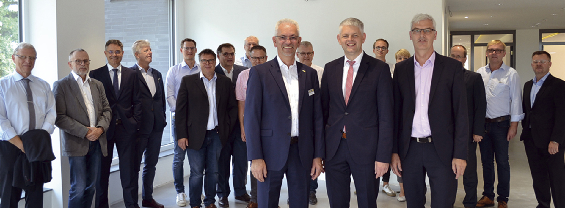 „Als Landesregierung NRW haben wir das Ziel, die unkompliziertesten Regelungen innerhalb von Deutschland zu schaffen und den Bürokratieabbau soweit es geht durch unsere Entfesselungspakete voranzutreiben“, erklärte Christoph Dammermann, Staatssekretär im NRW-Wirtschaftsministerium in den Räumen des Unternehmens SITA Bauelemente in Rheda-Wiedenbrück. Inwieweit hemmt Bürokratie die Belange und die Entwicklung von mittelständischen Unternehmen? Mit Unternehmensvertretern aus dem Kreis Gütersloh und auf Einladung der Pro Wirtschaft GT tauschte sich Staatssekretär Dammermann über dieses Thema aus. Begrüßt wurde er vom Geschäftsführer der Pro Wirtschaft Albrecht Pförtner, der ihn als als „geschätzten Kollegen“ und langjährig aktiven Streiter für eine gute Wirtschaftspolitik in Nordrhein-Westfalen aus seiner Zeit in der Geschäftsführung der Wirtschaftsförderungsgesellschaft Hamm vorstellte. Christoph Dammermann ermutigte seine Zuhörer, rund 20 Mittelständler aus dem Kreis Gütersloh, das Wort zu ergreifen und ihre Interessen zu vertreten. Die anwesenden Unternehmensvertreter lieferten dafür zahlreiche Anregungen: Von aufwendigen Transportgenehmigungen, über unzuverlässige Funk- und Telekommunikationsnetze, unzureichende Internetanbindung von Gewerbestandorten und umfangreiche Dokumentationspflichten in sehr unterschiedlichen Belangen. Zu den Themen Fachkräftemangel oder überzogene Datenschutzanforderungen fanden sich schnell Beispiele aus der Praxis der Unternehmen, die insbesondere bei kleineren Mittelständlern viel Zeit für das eigentliche Geschäft rauben.