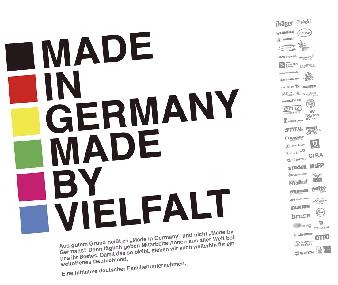 Dr. August Oetker hat sich der Initiative von insgesamt 50 Familienunternehmen aus Deutschland – darunter u.a. bekannte Marken wie Bahlsen, Claas, Henkel, Hipp, Otto, Vaillant, Vorwerk und Würth – angeschlossen, um gemeinsam mit der Kampagne „Made in Germany – Made by Vielfalt“ öffentlichkeitswirksam Stellung gegen Diskriminierung und Fremdenfeindlichkeit zu beziehen. „Als Familienunternehmen sind wir uns unserer gesellschaftspolitischen Verantwortung bewusst. Wir bekennen uns durch die Teilnahme an der Initiative zu einer offenen Kultur und möchten ein Zeichen zur Förderung von Toleranz und Weltoffenheit setzen“, so Dr. Albert Christmann, persönlich haftender Gesellschafter der Dr. August Oetker KG. Dafür sollen vielfältige Aktivitäten der beteiligten Unternehmen – u.a. Anzeigen in großen Tageszeitungen und Magazinen sowie Großflächenplakate – in den nächsten Wochen sensibilisieren. Entstanden ist die Idee zur Kampagne auf Initiative von Timm Mittelsten Scheid, Gesellschafter bei Vorwerk: „Das Thema beschäftigt mich persönlich sehr. Ich finde es wichtig, dass auch die Wirtschaft in Zeiten dieser gesellschaftspolitischen Debatten ein Zeichen setzt“, erläutert Timm Mittelsten Scheid sein Engagement. „Daher freut es mich umso mehr, mit der Idee auf so viel positive Resonanz im Kreis der Familienunternehmen gestoßen zu sein.“ Folgende Firmen beteiligen sich an der Kampagne: ACEG, B. Braun, Baerlocher, Bahlsen, Berner Group, Beumer Group, Boehringer Ingelheim, BPW Bergische Achsen KG, Brose, Claas, Deichmann, Dräger, emz, fritz-kola, Funke Mediengruppe, Giesecke+Devrient, Gira, Hansa-Flex, Henkel, Hipp, Horsch, Hubert Burda Media, Jägermeister, Kienbaum, Klett, Kostal, Krone, Lemken, Lindner, Marquard & Bahls, Messer Group, Metzler, Murtfeldt, Nolte Küchen, ODDO BHF, Oetker-Gruppe, Otto Group, Röchling, Sartorius, Sennheiser, SMS group, Stihl, Ströer, Südvers, Trigema, Vaillant, Vorwerk, Werksviertel Mitte, Wörwag, Würth.