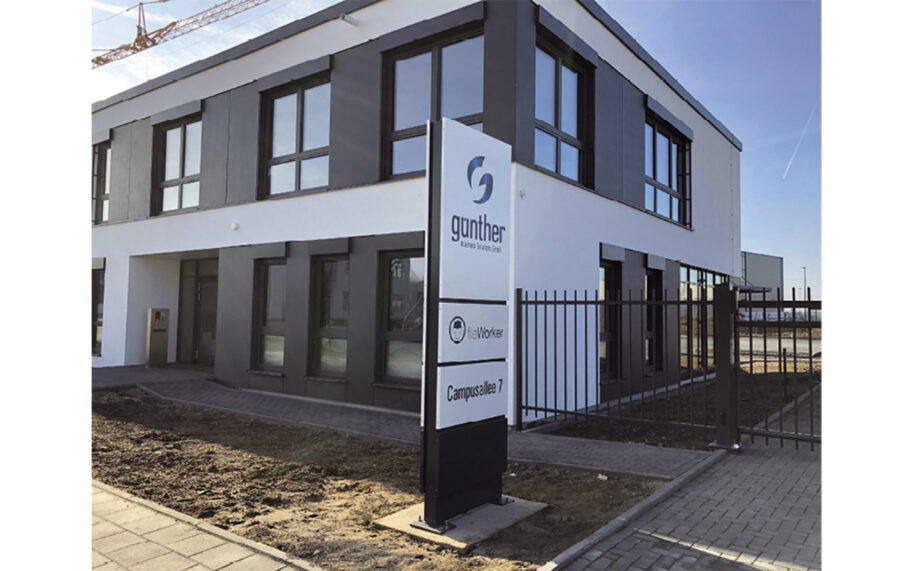 Günther BS, Leverkusen: Außenstele im Design des Gebäudes