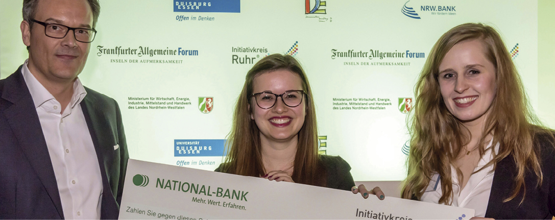 Ultraviolettes Licht gegen Keime an Rolltreppen: Mit diesem Konzept haben die Gründerinnen von UVIS den Startup-Pitch beim dritten Gründer-Forum NRW 2017 gewonnen. Tanja Nickel und Katharina Obladen setzten sich gegen drei weitere Gründerteams durch. Der vom Initiativkreis Ruhr verliehene Preis ist mit 10.000 Euro dotiert. „Das hohe Niveau hat gezeigt: Es gibt eine Fülle von vielversprechenden Ideen und konkreten Ansätzen für innovative Startups. Davon kann unsere Region profitieren“, sagte Dirk Opalka, Geschäftsführer der Initiativkreis Ruhr GmbH. „Der Preis soll den jungen Gründerinnen weiteren Schub geben. Mit ihrer Schaffenskraft sorgen Startups wie dieses für Innovationen und eine stetige Modernisierung unserer Wirtschaft. Ich wünsche dem Team auch weiterhin viel Erfolg.“ Die UVIS UV-Innovative Solutions GmbH mit Sitz in Köln gibt es seit 2016. Das Startup-Duo hat ein patentiertes Modul für die Entkeimung von Fahrtreppen-Handläufen durch ultraviolettes Licht entwickelt. Diese bilden eine der häufigsten Infektionsquellen im öffentlichen Raum. Beim Pitch im Fokus standen Startups, die es noch nicht länger als zwei Jahre gibt, und die aus den Branchen Chemie & neue Werkstoffe, Energie & Industrie, Life Sciences & Gesundheit, Logistik & Handel sowie Digitale Wirtschaft stammen. Die Top-10-Bewerber freuten sich über ein Experten-Feedback zu ihrem Geschäftsmodell. Die besten vier Startups gewannen ein Pitch-Training sowie die Einladung zur Präsentation ihres Unternehmens beim Gründer-Forum NRW.