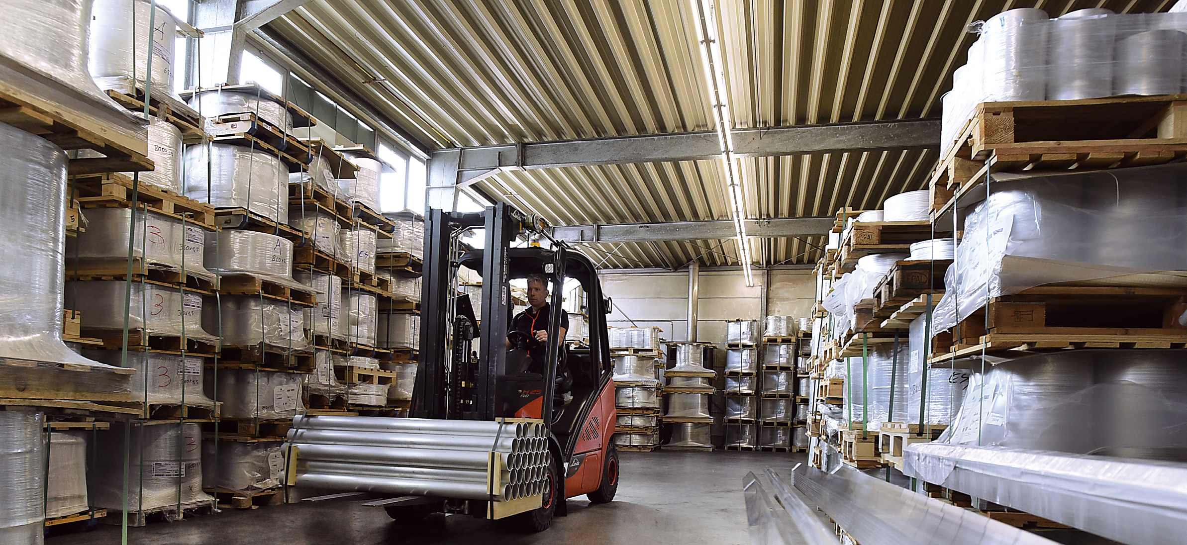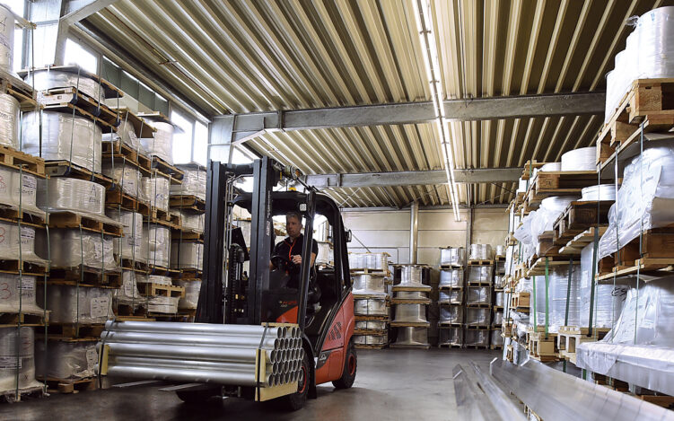 Insgesamt 20 Mitarbeiterinnen und Mitarbeiter beschäftigt das Unternehmen heute und realisierte zuletzt einen Jahresumsatz von 8,5 Millionen Euro: „Aluminium ist zwar kein neuer Werkstoff, aber dennoch ein Werkstoff der Zukunft“, ist sich Thomas Fritz bei seinem Hauptprodukt sicher, denn heute werden viele Dinge aus Aluminium hergestellt, die früher noch mit anderen Werkstoffen verbunden waren. „Es gibt bereits Aluminium-Legierungen, die eine höhere Festigkeit haben als Baustahl,“ verweist Mike Ebing auf immer neue Einsatzmöglichkeiten in der Automotive-Industrie und in anderen Branchen, für deren Anforderungen die beiden Geschäftsführer genauso offene Ohren haben wie für Innovationen in ihrer Stammkundschaft: „Unsere Kernzielgruppen sind Branchen, die leichte, leicht formbare, aber dennoch stabile Produkte herstellen – und zwar in der Lampen- und Leuchtenindustrie, der Lüftungsindustrie, im Maschinenbau, in der Werbebranche, der Verpackungsindustrie, aus dem Messebau sowie in der Bauindustrie.“ Hier liefern die Essener aus ihrem breit gefächerten Lager Aluminiumronden, also vorkonfektionierte Scheiben von 100 Millimetern bis 1,6 Metern Durchmesser, in Stärken von ein bis fünf Millimetern Dicke. „Wir sind der einzige Händler in Deutschland, der Aluminiumronden in dieser Vielfalt und dieser großen Menge frei verkäuflich ab Lager anbieten kann“ – eine Kernkompetenz, mit der FW Metallservice gut 75 Prozent seines Umsatzes generiert. Rund 350 Tonnen in den unterschiedlichsten Rondengrößen und Legierungen mit einem Gesamtwert von rund 1,5 Millionen Euro stehen hier jederzeit lieferbereit.