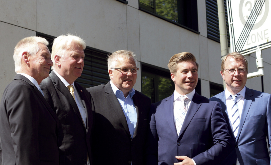 Nach 14-montiger Bauzeit hat der Baugewerbeverband Westfalen sein neues Bürohaus am Westfalendamm 223 errichtet. Das dreigeschossige Gebäude mit 969 Quadratmetern Nutzfläche und einer Tiefgarage ist vermietet. Präsident Walter Derwald sagte anlässlich der Einweihungsfeier am Montag: „Der Baugewerbeverband Westfalen baut seine Präsenz am Standort Dortmund aus. Als bauender Bauverband haben wir mit diesem Geschäftshaus für den Verband ein Renditeobjekt verwirklicht und zugleich ein Schmuckstück auf dem Weg zur Stadtkrone errichtet“. Oberbürgermeister Ullrich Sierau lobte in seiner Rede, dass die beiden Mieter des Objekts, Klaus Drücke Facility Services und der Bauspezialversicherer VHV, insgesamt 22 neue Arbeitsplätze in Dortmund geschaffen haben. Zum dritten Mal in seiner 112-jährigen Historie baut der Baugewerbeverband Westfalen seine Präsenz im Herzen Westfalens aus: 1904 in Essen gegründet, nahm der Verband 1949 seinen Sitz in Dortmund, zentral in der Reinoldistraße. 1964 wurde der Sitz in eine Villa am Westfalendamm verlegt. Dem Abriss der Villa folgte 1988 ein Neubau an gleicher Stelle, ganz traditionell in rotem Klinker gehalten. Dort befindet sich noch heute die Verbandsgeschäftsstelle der Bauverbände. 2010 errichtete der Verband neben der Verbandsgeschäftsstelle einen Seminartrakt aus Beton und Stahl.