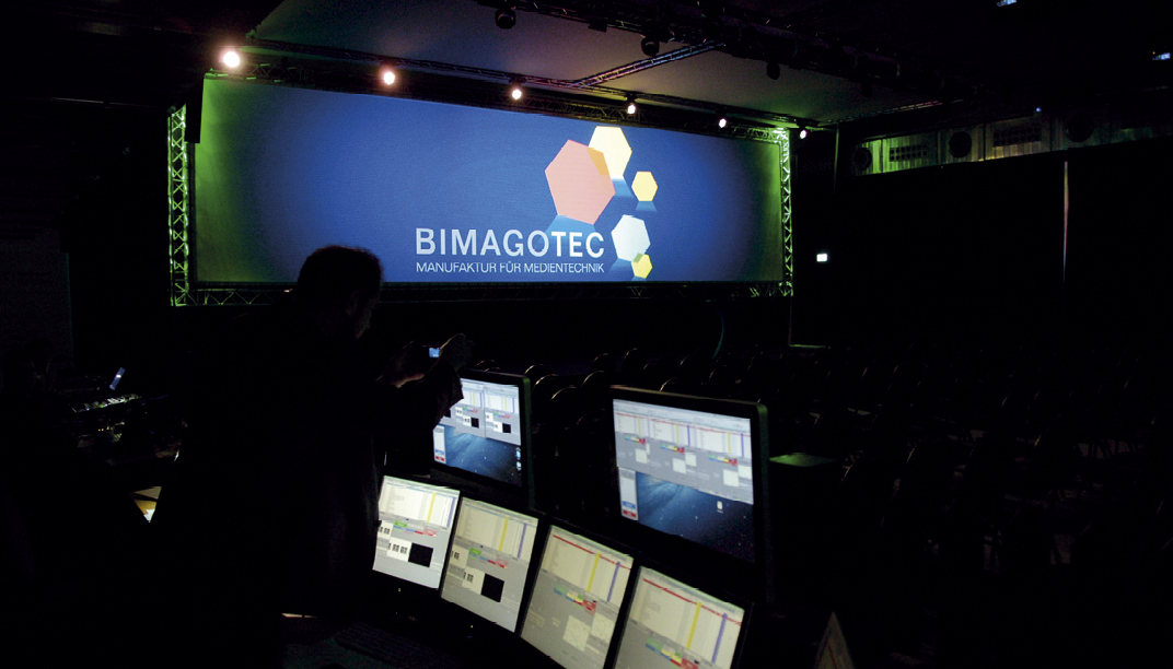 BIMAGOTEC hat sich auf Festinstallationen, Veranstaltungen und Events spezialisiert. Seit sechs Jahren entwickelt das Essener Unternehmen Konzepte und stellt die Technik für Konferenzen und Messestände sowie für Festinstallationen in den Räumlichkeiten der Auftraggeber. Und vor allem: Es setzt diese Konzepte auch erfolgreich um. „Wir sind von null auf 100 gestartet“, sagt Christian Buscher zufrieden. Der Name BIMAGOTEC ist inzwischen in der Branche etabliert und steht für Professionalität und Verlässlichkeit. „Bei uns steht nicht die Technik selbst im Vordergrund“, sagt Buscher. „Sie sollte so einfach wie möglich sein, damit sich beispielsweise der Referent auf seinen Vortrag konzentrieren kann, ohne sich erst lange mit der Technik auseinandersetzen zu müssen.“ Einfach einschalten – und die Technik funktioniert. BIMAGOTEC bezeichnet sich als Manufaktur für Medientechnik und hebt das handwerkliche Können und die Präzision hervor. Sechs fest angestellte Mitarbeiter gehören zum Team, gemeinsam suchen sie nach der individuellen und perfekten Lösung, die zu den Bedürfnissen des Auftraggebers passt.