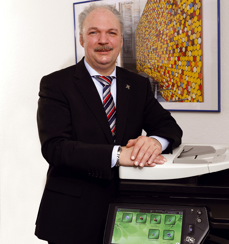 Als Manfred Fritz das Unternehmen 1976 gründete, war die Bürotechnik noch eine andere – damals waren Schreibmaschinen im Büro das Schreibgerät der Wahl. Heute spricht man vom papierlosen Büro. „Viele Kunden bilden ihre Geschäftsvorfälle tatsächlich zunehmend digital ab“, berichtet Bernd Potrifke, der seit 1993 im Unternehmen arbeitet und dieses 2001 als geschäftsführender Gesellschafter übernahm. Dass die Bedeutung des Kopierers hierdurch sinken würde, sieht Potrifke aber nicht. Im Gegenteil: „Als zentrale Druck-, Scan- und Archivierungs-Einheit ist ein gutes Kopiergerät wichtiger denn je.“