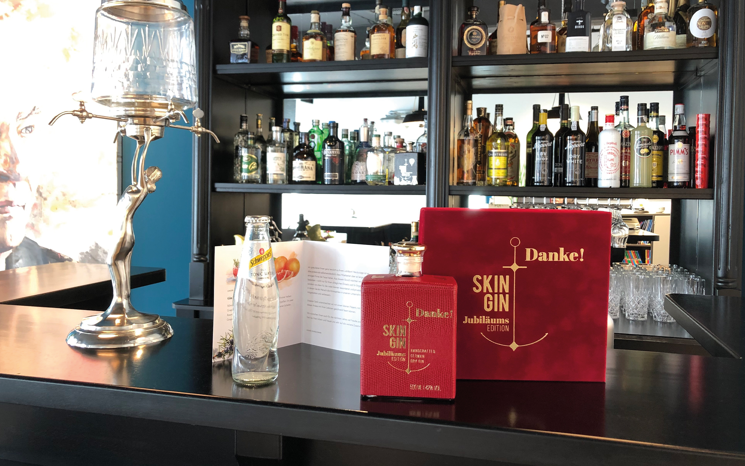 Die Skin-Gin-Eigenedition ist das perfekte Geschenk für Kunden oder Mitarbeiter und zugleich ein luxuriöser Artikel für das eigene Cross-Selling. Selbst wenn die Flaschen leer sind, lassen sich die edlen Flacons als Dekorationsobjekte nutzen, sodass das eigene Firmenlogo und damit die Corporate Identity bei jedem Besuch im