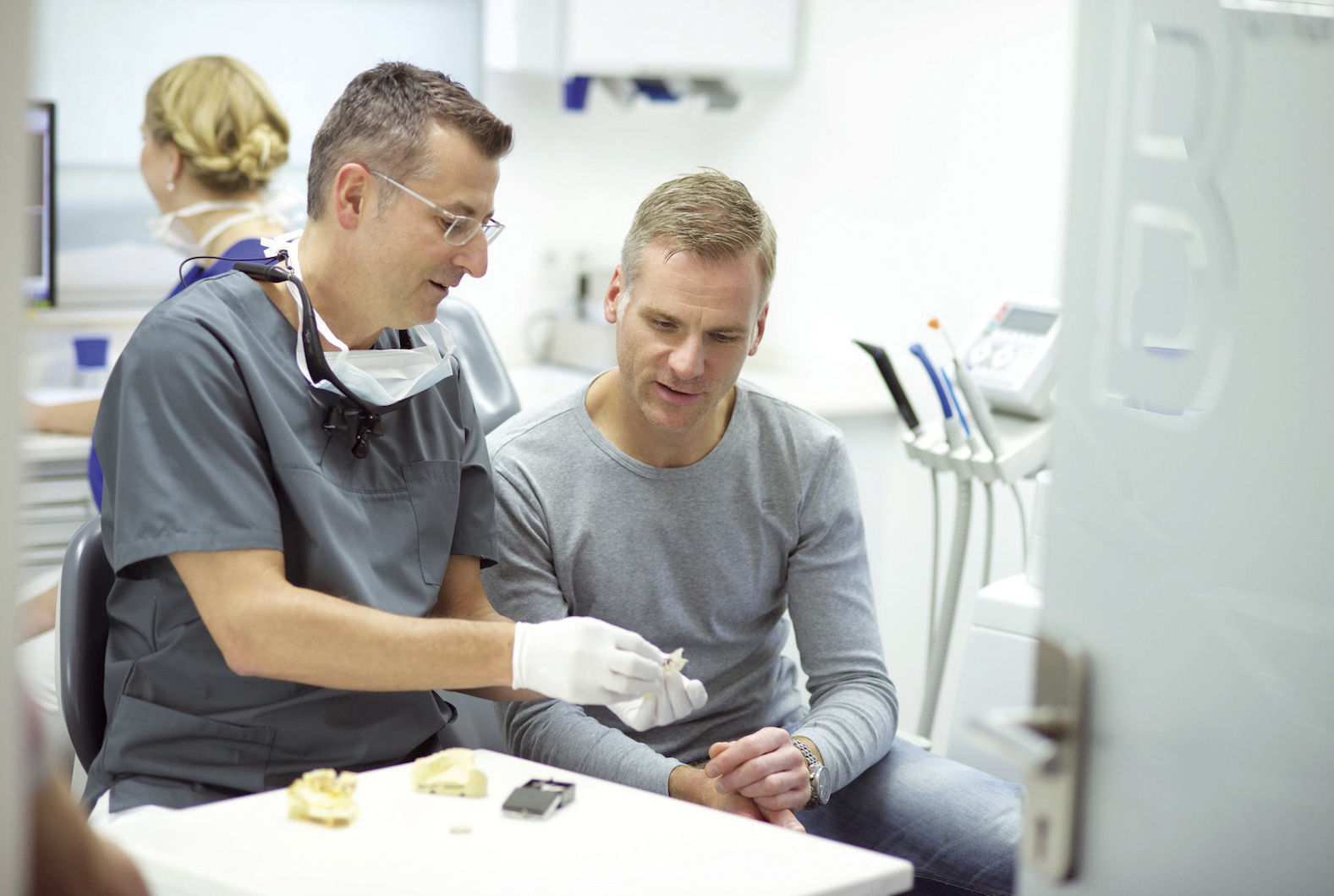 Aus diesem Grund setzen die Herner seit zwölf Jahren auf dreidimensionale bildgebende Verfahren und spezielle Softwareprogramme, um im Vorfeld einer OP eine präzise Konzeption vornehmen zu können. „Der Einsatz dieser ausgeklügelten 3-D-Diagnostik ermöglicht es uns, vorab die optimale Position der Implantate zu bestimmen. So wird sichergestellt, dass wir an Nerven, Gefäßen oder Kieferhöhlen ‚vorbeioperieren‘ und diese nicht beschädigen.“ Darüber hinaus sorge das computernavigierte Implantieren für eine sehr gewebeschonende und schmerzfreie Behandlung – mikroinvasiv und „ohne Skalpell“. Für diejenigen, die den OP sofort mit einem strahlenden Lächeln verlassen wollen, bietet Dr. Mintert sogar die Möglichkeit der direkten Versorgung durch das „All on Four“- oder das „All on Six“-System an. Dabei werden vier beziehungsweise sechs sehr lange Implantate in bestimmten Winkeln im zahnlosen Kieferknochen angeordnet und intraoperativ Provisorien eingesetzt. „Nach circa drei Monaten setzen wir dann den definitiven, fest sitzenden Ersatz ein.“ Auch Mini-Implantate zur Befestigung vorhandener Prothesen sind machbar. Um höchste Qualitätsstandards zu gewährleisten, setzt das Team bei der Wahl von Implantattypen, Verbindungs- und Halteelementen übrigens auf namhafte Hersteller wie Camlog oder Straumann. Im hauseigenen Meisterlabor besteht zudem die Möglichkeit, individuellen, ästhetisch hochwertigen Zahnersatz anzufertigen. Darüber hinaus profitieren Patienten in der Herner Zahnklinik von kurzen Wegen: „Die Implantatversorgung ist bei uns Teamwork“, so der Chef. „Hier arbeiten Implantologe, Zahnchirurg und Zahntechniker unter einem Dach Hand in Hand zusammen.“ Auf diese Weise gelingt es, die Abstimmung untereinander zu optimieren und die Behandlungszeit zu verkürzen.