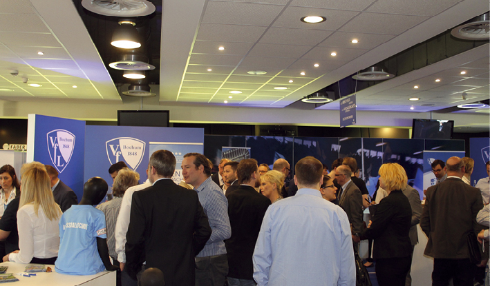 Mit über 80 Ausstellern, die ihre Unternehmen und Produkte in der rewirpowerLOUNGE vorstellten, konnte die Veranstaltung einen neuen Teilnehmerrekord verzeichnen. Auch bei den über 1.000 Besuchern zeigte sich, dass der VfL erneut eine rundum gelungene Veranstaltung auf die Beine gestellt hatte. Um Punkt 10 Uhr öffneten am 12. Mai 2016 die Tore der rewirpowerLOUNGE, um erneut das VfLNETZWERK-ERLEBNIS für Partner und Sponsoren und solche, die es werden wollen, zu veranstalten. Mit über 80 teilnehmenden Unternehmen konnte ein neuer Rekord aufgestellt werden, auch die mehr als 1.000 Besucher stellten eine neue Bestmarke dar. Sie konnten die Gelegenheit nutzen, einen tiefen Einblick in die gemeinsame Arbeit des VfL Bochum 1848 und seiner Partner zu erlangen. Ein attraktives Rahmenprogramm trug dazu bei, dass an diesem Tag in der rewirpowerLOUNGE viele Kontakte geknüpft und Hintergrundwissen erlangt werden konnten. So hatte der VfL einige