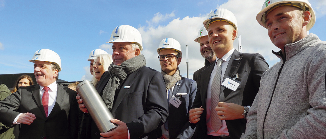 Bereits seit mehr als 100 Jahren bleibt die Stölting Service Group, einer der führenden Anbieter von Serviceleistungen in Deutschland, ihrem Hauptsitz in Gelsenkirchen treu. Aktuell baut Stölting dort eine neue Hauptverwaltung auf dem ehemaligen Kraftwerksgelände der Zeche Graf Bismarck. Die Reinigungs-, Sicherheits- und Personalexperten betonten zur Grundsteinlegung am 10. März den Wert Gelsenkirchens als Standort mit idealer Infrastruktur. „Von Gelsenkirchen aus sind wir in kürzester Zeit im ganzen Ruhrgebiet, im Münsterland, Rheinland oder Sauerland, wo auch immer unsere Kunden uns erwarten. Die Vorfreude auf die neu entstehende Hauptverwaltung ist bei allen groß. Vor zehn Jahren hatten wir vier Mitarbeiter auf 250 Quadratmetern. Jetzt bauen wir sechs Stockwerke Stölting“, resümiert Stölting-Chef Hans Mosbacher. In direkter Nachbarschaft zur ehemaligen Zeche Graf Bismarck sollen Arbeitsplätze für Hunderte entstehen, wobei heute der hohe Freizeitwert des neuen Quartiers weitere Anreize setzt für Unternehmen. Die Stölting-Verantwortlichen freuten sich über den Besuch zahlreicher Gäste, unter ihnen Oberbürgermeister Frank Baranowski und NRW-Bauminister Michael Groschek. Frank Baranowski betonte: „Dieser Standort ist für die gesamte Entwicklung Gelsenkirchens von übergeordneter Bedeutung. Für mich ist es tatsächlich ein Meilenstein der Stadtentwicklung. Wir dürfen stolz sein auf unsere Rahmenbedingungen und mutige Investoren, die erkannt haben, was hier alles möglich ist.“ In etwa einem Jahr sollen die Arbeiten an der neuen Stölting Verwaltung und die Gestaltung des Umfelds beendet sein.