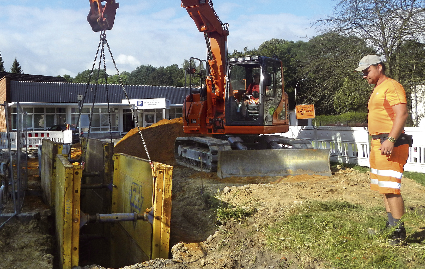 Von Straßenbau mit Asphaltarbeiten über Pflasterarbeiten bis hin zu Kanalbau, Kanalsanierungen, Kabelverlegungen oder Hausanschlüssen reicht das Spektrum. „Tiefbau-Aufgaben jeder Art sind unser Daily Business. Vom Hoch- und Hausbau haben wir uns vor Jahren verabschiedet.“ Wer vielfach in der Innenstadt unterwegs ist, wird sicher schon mal die weißen, gerillten Steine im Bürgersteig gesehen haben sowie die abgesenkten Bordsteinkanten an den Fußgänger-Überwegen. Im Fachjargon heißen sie „barrierefreie Querungshilfen“ und sind für blinde oder behinderte Menschen laut Bundesgesetz seit einiger Zeit vorgeschrieben. Ihr Einbau wird von Möckel-Teams durchgeführt. Rund 70 Prozent der Bauaufträge kommen bei Möckel von öffentlichen Auftraggebern, wobei der Anteil an privatwirtschaftlichen Kunden allmählich zunimmt – mittelständische Unternehmen, aber auch Industriebetriebe. „Bei vielen Unternehmen, die vor Jahrzehnten gegründet wurden, fallen mittlerweile die ersten Reparaturen und Kanalsanierungen an, die wir weitestgehend im laufenden Betrieb durchführen.“ Auch Erweiterungen des Firmengeländes mit Erschließungsstraßen gehören zu den klassischen Aufgaben für Alexander Möckel und seine Bau-Teams. Straßenfundamente, Kanalisation, Borsteinkanten, Straßenpflaster – fertig!