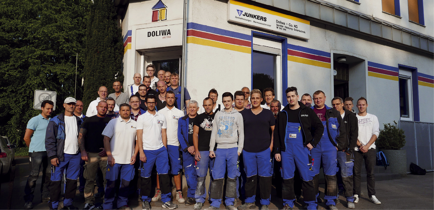 Dabei begann das Unternehmen genau so. Johann Doliwa gründete 1932 den Installationsbetrieb und übergab das Zepter in den 70er-Jahren an seinen Schwiegersohn Jörg Zeschky und den Heizungsbaumeister Adolf Bremm, die wiederum die beiden heutigen Geschäftsführer ausbildeten. Denn Dipl.-Ing. OIiver Bremm und Meister Wolfhard Michler machten, wie man so schön sagt, „im Unternehmen Karriere“. Heute haben die beiden den Mitarbeiterstamm auf rund 70 Personen ausgeweitet, mit einem sehr hohen Ausbildungsanteil. „Wir sind dem aktuellen Trend gefolgt und haben uns in den letzten Jahren eigene Meister und Angestellte aus den unterschiedlichen Handwerkssparten ins Unternehmen geholt. Seit 2011 sind wir auch Elektro-Innungsbetrieb“, sagt Wolfhard Michler. Elektriker, Maler, Fliesenleger und natürlich die Installateure aus dem Kernbereich Heizung und Sanitär – bei Doliwa erhalten Bauherren und Hausbesitzer die unterschiedlichen Bau- und Sanierungsarbeiten aus einer Hand. Oliver Bremm: „Die interne Verzahnung der Gewerke hat natürlich große Vorteile für einen reibungslosen Ablauf eines Bauvorhabens, und es ist für den Bauherren deutlich kostengünstiger.“ Dabei bietet die Doliwa GmbH gut durchdachte planerische Aufgaben gleichgewichtig neben einer perfekten Ausführung an. Beispiel energieeffizientes Bauen: „Wir erleben es häufig, dass bei Wohngebäuden über die Zeit viele nicht aufeinander abgestimmte Sanierungsmaßnahmen durchgeführt wurden.“ Oft kommt es vor, dass zwar eine energieeffiziente Haustechnik eingebaut wurde, das Gebäude aber dennoch nicht wirtschaftlich rentabel ist. Wolfhard Michler: „Was nützt das ‚KFW-Effizienzhaus 70‘, wenn der niedrige Energieverbrauch durch hohe Kosten für die Ablesung von Wärmemengenzähler oder Wartungsarbeiten wieder aufgefressen wird. Am Ende zahlen die Bewohner dann über die Kostenumlage das Gleiche wie zuvor. Das versteht kein Mieter.“ Das Konzept von Oliver Bremm und Wolfhard Michler sieht hingegen vor, ein Gebäude ganzheitlich, nachhaltig und energieeffizient zu planen sowie den Umbau so kosteneffizient wie möglich umzusetzen.