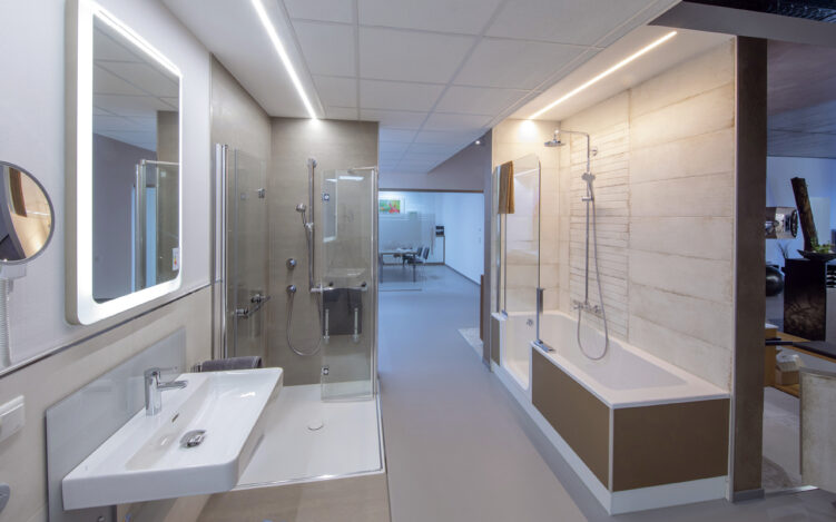 Und den Weg dahin gestaltet das Team der „Bäderschmiede Am Förderturm“ ebenso barrierefrei wie das Bad selbst. Denn unter der Dachmarke verbirgt sich ein jahrelang gut eingespieltes Netzwerk von Handwerksunternehmen. „Der große Vorteil für unsere Kunden ist, dass sie hier nur einen Ansprechpartner haben, der ihr Projekt vollständig betreut und im Hintergrund die Aufgaben mit den beteiligten Gewerken abstimmt“, hebt Patrick John hervor. Dabei werden alle Sanitär-, Heizungs- und Solararbeiten von der John GmbH durchgeführt. Fliesen Scholz kommt bei der Verlegung von Keramik und Natursteinen zum Einsatz, während Malermeister Andreas Pfennig für die farbliche Wand- und Deckengestaltung verantwortlich zeichnet sowie Günter Leidecker für die Möbelentwürfe, die eine Badgestaltung ebenso effektvoll wie hochwertig ergänzen. Alle Elektroarbeiten werden von Achim John und seinem Team ausgeführt, dem Bruder des heutigen Geschäftsführers der John GmbH, Peter John.