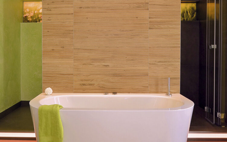 Naturmaterialien und natürliche Optiken erobern derzeit die Welt der Badezimmer – hier, wo man sich am frühen Morgen frisch macht und zum Abend ganz entspannt den Tag beendet. „Ein Bad ist ein Raum, in dem man sehr natürlich ist, im wahrsten Sinne nackt. Da umgibt man sich gerne auch mit Materialien, die nicht vorgeben, etwas anderes zu sein, als sie sind“, erklärt Jens Wischmann, Geschäftsführer der Vereinigung Deutsche Sanitärwirtschaft in Bonn, den derzeit heißesten Trend in der Sanitäreinrichtung, für den sich aktuell viele Kunden erwärmen. Saftige Grüntöne, effektvoll gemasertes Echtholz und robuster Stein sind die Elemente, die dabei gern kombiniert werden. „Hinzu kommen aber auch die Möglichkeiten, mit modernen Armaturen das zentrale Element Wasser zu inszenieren und dem gesamten Raumeindruck mit dem richtigen Lichtdesign einen beeindruckenden Rahmen zu geben“, ergänzt Peter John, Geschäftsführer der John GmbH – und wie von Zauberhand wechselt das Licht in dem Musterbad, in dem wir stehen, von einem strahlenden Frühlingsgelb in eine gemütlich-warme Sonnenuntergangsstimmung. „Licht-Emotionen spielen in der modernen Badezimmergestaltung eine immer größere Rolle“, erklärt der Experte, wobei hier die modernste LED-Technik mit sehr sparsamen Lichtquellen und einer einfachen Smartphone-App-Steuerung zum Einsatz kommen – Fernbedienung war gestern.