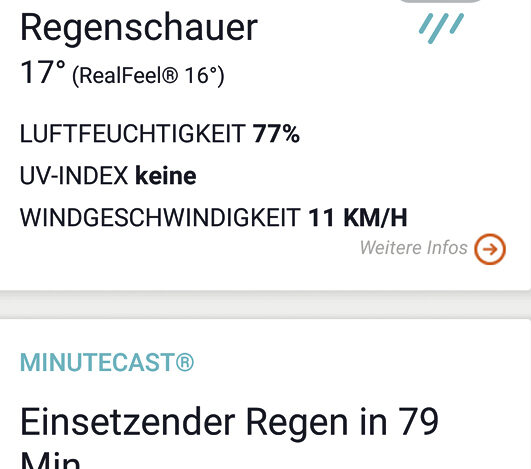 Akkurate Wetterprognosen, dafür steht AccuWeather. Mit schätzungsweise 1,5 Milliarden Nutzern gehört der Dienst zu den weltweit meistgenutzten Apps für Smartphone oder Tablet. AccuWeather liefert individuelle Vorhersagen für jeden Standort auf der Welt. Zudem bietet die App aktuelle Wetterinformationen und weiterführenden Daten, darunter auch besondere Funktionen wie eine minütlich aktualisierte Niederschlagsvorhersage für Ihre Straße oder Ihren GPS-Standort in den nächsten zwei Stunden. Mit dieser Funktion erhalten Sie nicht nur eine Übersicht über Niederschlagsart und -stärke in den nächsten 120 Minuten, sondern wissen auch genau, in welchem Zeitraum Ihr exakter Standort vom Niederschlag betroffen sein wird – und das nicht nur in Essen oder Düsseldorf, sondern in vielen Ländern und Metropolen wie z.B. Kanada, Japan oder Frankreich. Mit AccuWeather wissen Sie immer genau, wie das Wetter wird. Fazit: Wetter, Wetter, Wetter. Kostenlos erhältlich für Android, iOS, Windows Phone und BlackBerry.