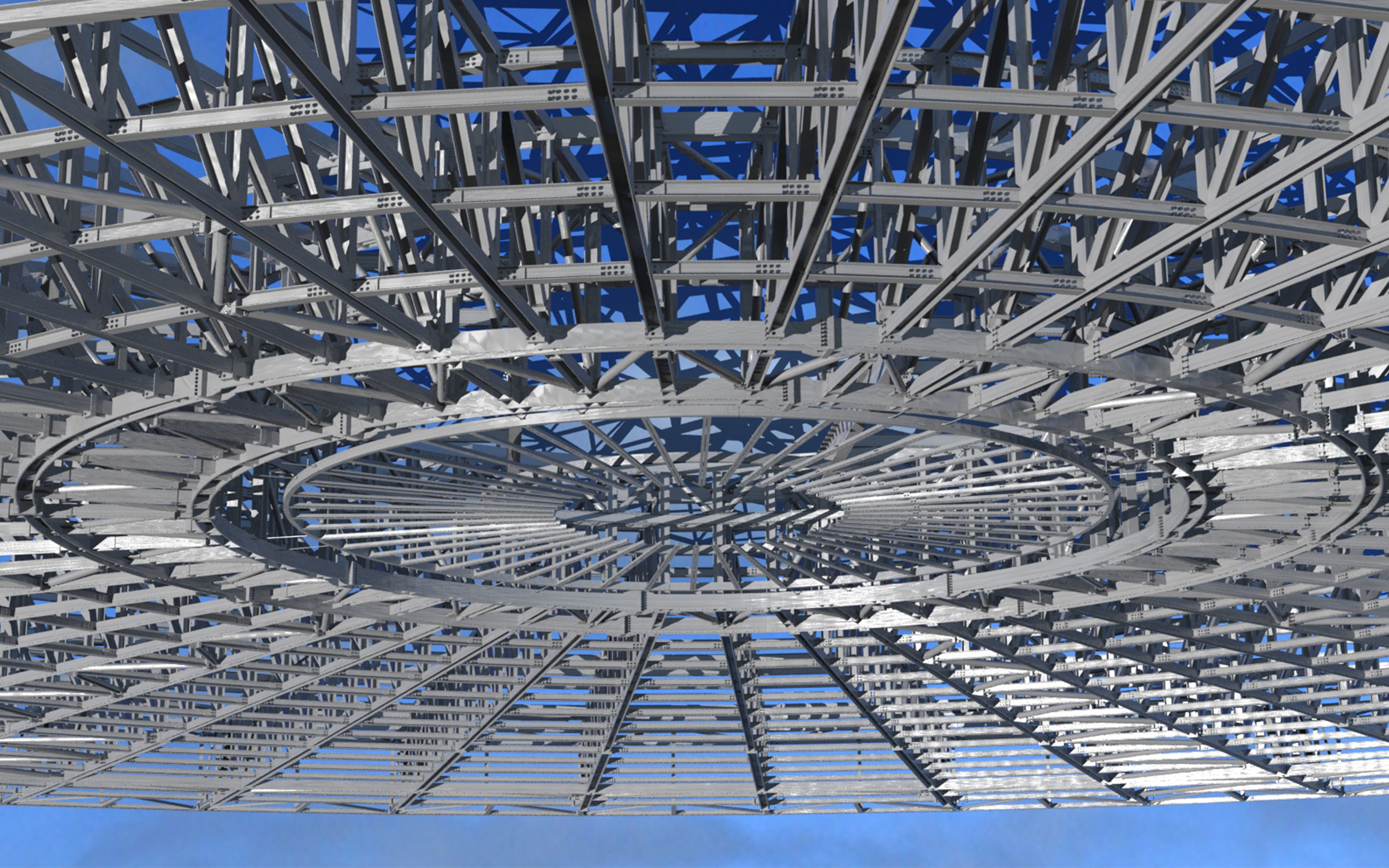 3D-Modell-Visualisierung: Dachkonstruktion der Radsporthalle Velodrom in Berlin (© ISP GmbH)
