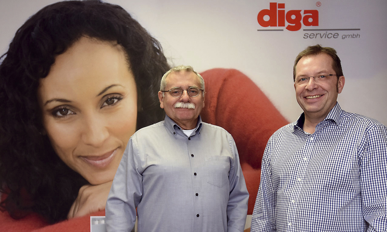 Ein weiterer Schwerpunkt liegt auf der Kontrolle von Gasanlagen. „Wir führen die erforderlichen Prüfungen mit zertifiziertem Fachpersonal bundesweit durch“, sagt Heinz Taurel, stellvertretender Geschäftsführer. diga® verfügt schließlich über das DIN-DVGW-Baumusterprüfzertifikat (DVGW-Arbeitsblatt G 624) und ist als DVGW-Fachunternehmen zertifiziert. „Undichte Gasleitungen werden nach unserem patentierten Verfahren mit dem speziellen Dichtmittel digalit®-gi dauerhaft abgedichtet.“ Um Arbeiten für den Kunden möglichst stressfrei zu gestalten, agiert das Team äußerst kundenorientiert; die Arbeitszeiten der Spezialisten können bei Bedarf auf die Abendstunden verschoben werden. Für sämtliche Bereiche steht zudem ein 24-Stunden-Notdienst zur Verfügung. Entstanden ist diga® bereits im Jahr 2000: Damals löste Jörg Gliese den Kundendienstbereich aus dem bisherigen Ruhrgas-Konzernverbund heraus. Er selbst war Kundendienstleiter bei der Vorgängerfirma diga Gebäudetechnik GmbH, einem Tochterunternehmen der damaligen Ruhrgas AG. Im Laufe der Jahre stieg die Mitarbeiterzahl von 32 auf 65; bundesweit können durch Nachunternehmer insgesamt 160 Fachkräfte eingesetzt werden. „Großen Wert legen wir auf stetige Aus- und Weiterbildung, damit wir unser hohes Leistungs- und Qualitätsniveau garantieren können“, erklärt Gliese. „Außerdem ist mir wichtig, dass unsere Mitarbeiter Spaß an der Arbeit haben. Von ihrer außerordentlichen Motivation profitieren dann auch unsere Kunden.“