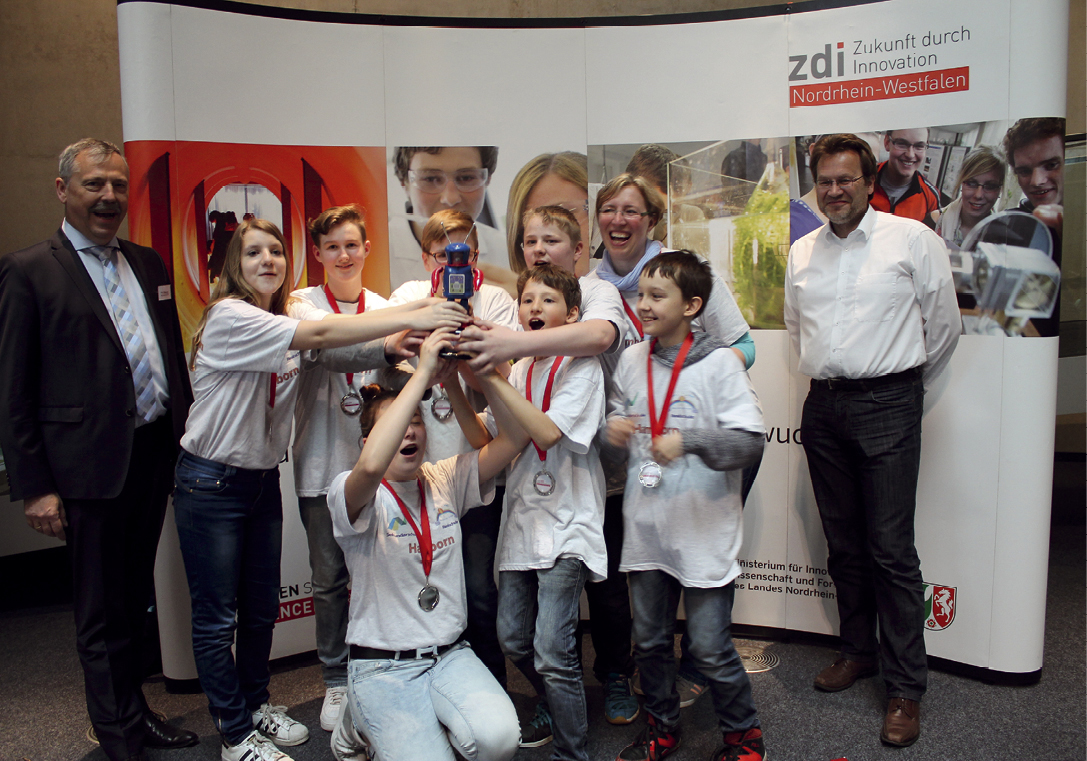 Im Neudorfer Technologiezentrum drehte sich im Mai alles um künstliche Intelligenz – programmiert von pfiffigen Talenten. Grund dafür war der NRW-weite zdi-Roboter-Wettbewerb. Beim Regionalentscheid Duisburg Niederrhein 2016 in der Kategorie „Robot Game“ hatte das Team Robo-Gang-Hamborn, eine gemeinsame AG der Realschule Hamborn 2 und der Sekundarschule Hamborn, die Nase vorn. Die Robo-Gang-Hamborn konnte sich gegen starke Konkurrenz aus sieben Schulen durchsetzen und sich somit für den Landesentscheid in Mülheim an der Ruhr qualifizieren. Den zweiten Platz belegte das Team oneBRICK des Albert-Einstein-Gymnasiums Duisburg und über den dritten Platz freute sich das Team Fresher Than U des Gymnasiums Rheinkamp Europaschule Moers. Alle Teams traten mit selbst gebauten und selbst programmierten LEGO-Mindstorms®-Robotern im vorgegebenen Parcours an. „Mit Aktionen wie diesen soll der Fachkräftemangel im ‚MINT‘-Bereich – also in Mathematik, Informatik, Naturwissenschaften und Technik – zumindest perspektivisch reduziert werden“, fasst GFW-Chef Ralf Meurer die Intention zusammen. „Und solche Programmiertalente, wie hier gesehen, müssen erst einmal entdeckt und dann gefördert werden“, ergänzt Dr. Birte Hauser, Koordinatorin des zdi-Zentrums DU.MINT Duisburg Niederrhein. Daher stand dieses Mal auch Informationen über Wege ins Studium und in den Beruf im Mittelpunkt. Das Ziel war es, möglichst viele junge Leute für ein Studium zu begeistern und aufzuzeigen, welche verschiedenen Möglichkeiten und Angebote dorthin führen.