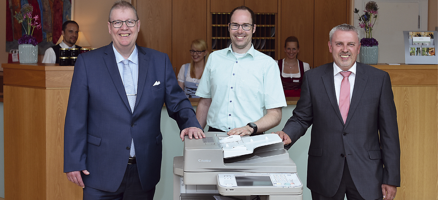 Daneben werden Dienstleistungen wie beispielsweise der von der Firma Jörg Metzner angebotene individuelle Vier-Stunden-Service in Anspruch genommen. Von der Fehlermitteilung eines Systems bis zum Vor-Ort-Einsatz geht alles ganz schnell. So verrät Thomas Dahlkamp: „Die schnellen Reaktionszeiten im Falle einer Störung sowie eine unkomplizierte, zeitnahe und zuverlässige Belieferung aller notwendigen Verbrauchsmaterialien sind ausschlaggebend für eine aus unserer Sicht harmonische Zusammenarbeit“ – unter anderem entspricht genau das dem gemeinsamen Verständnis von einem perfekten Service. Gerade aus diesem Grunde dauert die gemeinsame Geschäftsbeziehung nun schon rund sieben Jahre an. Mittlerweile betreut das Unternehmen Jörg Metzner rund 25 Systeme in dem über die Landesgrenzen hinaus bekannten Dattelner Wellnesshotel sowie im Hotel Rimberg in Schmallenberg, welches ebenfalls von der Familie Schnieder geführt wird. Dabei kümmert sich das Metzner-Team nicht nur um den Vertrieb, sondern bietet einen umfassenden Komplett-Service an. „Umfangreiche Kontroll- und Auswertungsmöglichkeiten ermöglichen es uns, die Qualitäts- und Kostenzufriedenheit auf einem gewinnbringenden Stand zu halten“, erläutert Dahlkamp. Auf Wunsch wird auch die komplette Verwaltung der Druck- und Multifunktionssysteme übernommen – von automatisierten Zählerstandsmeldungen bis hin zur selbstständigen Tonerbestellung oder der Meldung eines technischen Problems kann der Kunde individuell entscheiden, welchen Service er nutzen möchte. In der bewährten Zusammenarbeit ist stets eine gegenseitige Wertschätzung spürbar, stellen beide Unternehmen erfreut fest. Resümiert wird dies durch Thomas Dahlkamp: „Die Firma Jörg Metzner ist somit ein kompetenter und freundlicher Ansprechpartner für unser mittelständisches Unternehmen.“