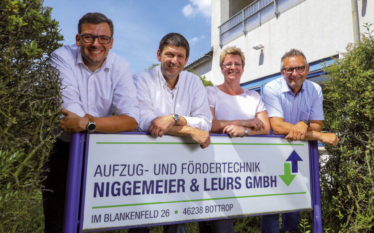 Mittlerweile konzentrieren sich die Bottroper voll und ganz auf Aufzüge. Der Schwerpunkt liegt dabei auf Anlagen im Bestand. „Bei Bedarf bieten wir unseren Kunden alles aus einer Hand an – von der Wartung über die 24-Stunden-Störungsbeseitigung und Reparatur bis hin zur Modernisierung“, erklärt Lutz Leurs. Mit 43 Mitarbeitern und einem Jahresumsatz von 5,4 Millionen Euro (2018) ist Niggemeier & Leurs das größte mittelständische Aufzugunternehmen im gesamten Ruhrgebiet. Auch das Branchenspektrum der Kunden ist in der 46-jährigen Firmengeschichte kontinuierlich gewachsen: Heute zählen die Stahlindustrie, die chemische Industrie, Krankenhäuser, Banken und Sparkassen, Seniorenresidenzen, Wohnungsbaugesellschaften und Kommunen dazu. Die einstige Abhängigkeit vom Bergbau ist schon lange vorbei.