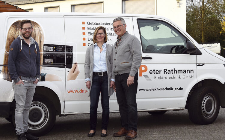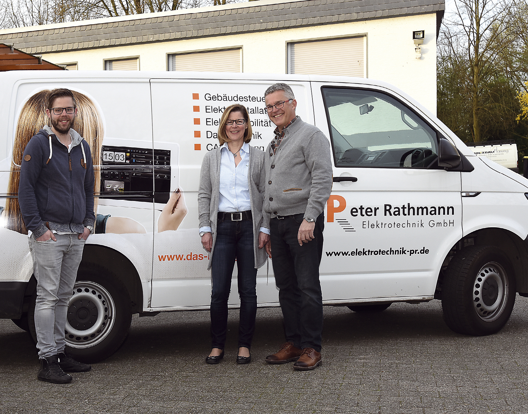 Als mittelständisches Handwerksunternehmen in einer Branche mit vielen Wettbewerbern ist es von großem Vorteil, wenn man sich in einem Bereich besonders profilieren kann. Ihre große Leidenschaft für technische Innovationen ist für Peter Rathmann und seinen Sohn Sebastian so ein Bereich, bei dem sie voller Energie und Begeisterung ins Schwärmen geraten – über Elektromobilität, Datennetzwerktechnik oder intelligente Gebäudesystemtechnik z.B. –, aber auch Zuverlässigkeit, Serviceorientierung und eine persönliche Beratungs-Kompetenz gehören zum Erfolgsrezept des rund 20 Mitarbeiter starken Handwerksbetriebes in Essen-Steele. Bevor sich Peter Rathmann als Elektromeister selbstständig machte, hatte er bereits acht Jahre als Angestellter in diesem Essener Elektrobetrieb gearbeitet. Als ihm sein damaliger Chef dann die Firma zum Kauf anbot, musste er nicht lange überlegen. Mit zahlreichen Ideen und einem guten Händchen für ihre Umsetzung übernahm Peter Rathmann vor nunmehr 22 Jahren die Verantwortung für die kleine Gruppe Mitarbeiter. Mit den Jahren und der wachsenden Zahl an Aufträgen wuchs auch das Team auf mittlerweile rund 20 Mitarbeiter.