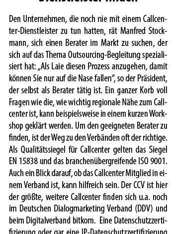 Wenn Manfred Stockmann, Präsident des Call Center Verbands Deutschland e.V. (CCV), auf seine Branche schaut, sieht er ein äußerst heterogenes Feld. Und so unterschiedlich wie die einzelnen Ausprägungen der Callcenter sind, so verschieden sind auch die Probleme, mit der sich die Branche beschäftigt. Haben Betriebe, die an Unternehmen angegliedert sind, beispielsweise wenig Probleme mit hoher Fluktuation, ist das bei den dienstleistenden Callcentern ein großes Thema. Gemeinhin wird die Callcenter-Branche in zwei Ausprägungen unterteilt. Auf der einen Seite existieren die „Inhouse-Callcenter“, welche als eine Abteilung eines Unternehmens fungieren. Auf der anderen Seite gibt es die Dienstleister, welche ihre Dienste an Unternehmen verkaufen. Manfred Stockmann sieht die Branche allerdings noch deutlich weiter untergliedert: „Es gibt Dienstleister, die für Dritte arbeiten, aber trotz allem eventuell nur einen Kunden haben. Das kommt oft bei Banken oder Versicherungen vor“, so der CCV-Präsident. Nicht selten sei beispielsweise das Callcenter eine Tochterfirma des Hauptunternehmens. Dann wiederum gäbe es auch Callcenter, die als Inhouse-Unternehmen angefangen hätten, aber mittlerweile einen kleinen Prozentsatz ihrer Arbeitskraft auch an Dritte verkaufen, also zum Dienstleister werden. Unterschiede gebe es nach Stockmann auch bei der Frage, wem der Outsourcer gehöre. Mal seien die Dienstleister inhabergeführt (dann selten mit mehr als 1000 Mitarbeitern), mal jedoch auch von Konzernen gekauft, die mal mehr, mal weniger viel mit der Callcenter-Branche zu tun haben. Nicht einfacher wird die Lage dadurch, dass nicht jedes Land das Feld gleich definiert. Zählen in manchen Ländern beispielsweise auch interne Helpdesks von Unternehmen und Notrufdienste zur Branche, ist das in Deutschland nicht der Fall.