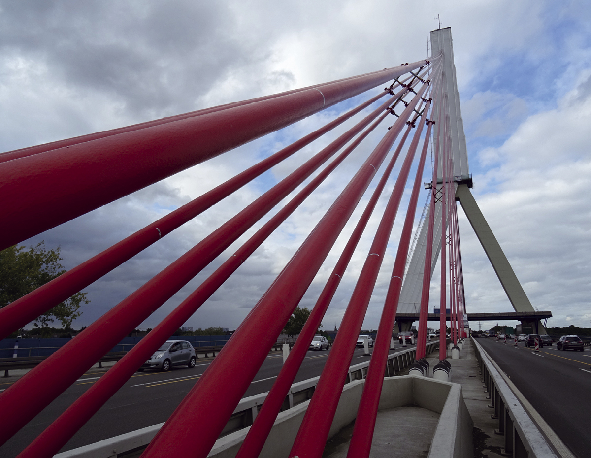 Beim Überqueren der Fleher Brücke hat so mancher Autofahrer sicher schon einmal einen Blick auf deren imposante Tragseile riskiert. Diese 96 Stahlkabel, die Durchmesser zwischen 111 und 93 Millimeter haben, sehen nicht nur beeindruckend aus, sie leisten Schwerstarbeit: Immerhin überqueren an Werktagen circa 95.000 Fahrzeuge die A46-Brücke, die den Rhein zwischen Düsseldorf und Neuss überspannt.