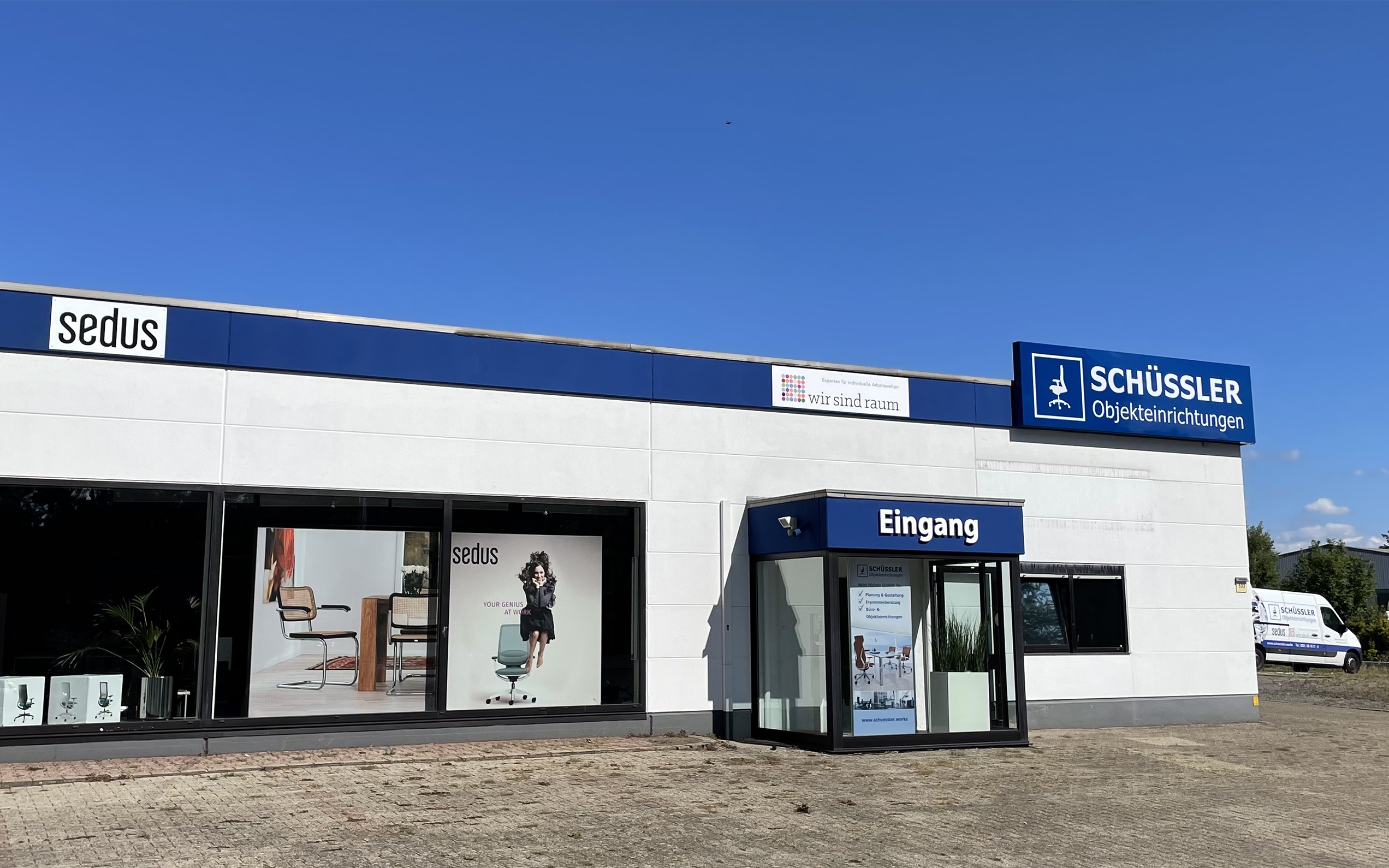 Mitten in einer Großstadt zu arbeiten und trotzdem jeden Morgen das Gefühl zu haben, man befindet sich irgendwo in freier Natur, das ist schon lange kein Widerspruch mehr. „Begrünte Wände, Tageslichtlampen und Akzente, die wir mit Farben oder Formen setzen können, sorgen dafür, dass das Raumklima kontinuierlich als angenehm empfunden wird“, erklärt Michael Jander, „ganz wichtig auch das Stichwort ‚kognitive Umgebung‘. Hier nehmen künstliche Intelligenzen die individuellen Wünsche der Beschäftigten auf und setzen sie um. So passt sich der Arbeitsplatz im Laufe der Zeit immer besser an den Menschen darauf an. Welches Licht soll vorherrschen? Wie warm darf es sein? Wie kann der Bürostuhl exakt abgestimmt werden? Zeitgemäße Möbel denken sozusagen immer mit.“ Erst im Sommer ist Schüssler mit seinem Dortmunder Stammhaus in die Nähe des Induparks in Kley umgezogen, um hier in einer noch größeren Filiale die ganzen kleinen und großen Features der modernen Büro- und Objekteinrichtung direkt präsentieren zu können. 500 Quadratmeter Ausstellungsfläche hat Schüssler insgesamt. Im 900 Quadratmeter großen Lager werden auch einzelne Möbel vorgehalten, so dass ein defekter Stuhl – sofern ihn die Monteure nicht reparieren können – schnell aus den eigenen Beständen ersetzt werden kann. Die 25 Mitarbeiter beraten grundsätzlich herstellerunabhängig. Maßgeblich sind allein die Erfordernisse in den jeweiligen Büros. Ein Notar oder Steuerberater arbeitet immer noch viel mit gedrucktem Papier und muss Raum für vertrauliche Gespräche haben, eine Medienagentur dagegen braucht das richtige Ambiente für kreative Brainstormings. Überhaupt ist wohl der wesentliche Faktor in den letzten Jahren die Flexibilität geworden.