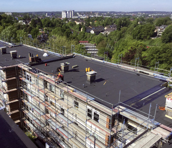 Zur reibungslosen Auftragsabwicklung tragen ebenfalls eine perfekte Organisation und Arbeitsvorbereitung sowie die Planung von Oberbauleiter Udo Spies und seinem Team bei. Im Laufe der 27-jährigen Firmengeschichte konnte das eingespielte Team zudem einen breiten Erfahrungsschatz anhäufen; der Arbeitsablauf ist für die Mitarbeiter schon fast Routine. „Jeder weiß genau, was zu tun ist, sodass alle Zahnräder bei der Auftragsabwicklung ineinandergreifen“, sagt Ute Meschede, die im Unternehmen als Einkäuferin fungiert. Mit dieser Kombination aus Erfahrung, Kompetenz und Manpower schaffen es die Recklinghäuser, ihre Kunden immer wieder aufs Neue zu überzeugen. Heute zählen nahezu alle großen Wohnungsgesellschaften im Ruhrgebiet zu ihren Auftraggebern, einige von ihnen sogar schon seit mehr als 20 Jahren. Schwerpunktmäßig kümmert sich Meschede um Bedachungen im Revier; doch das Team konnte auch schon zahlreiche Projekte im gesamten Bundesgebiet zur Zufriedenheit seiner Kunden ausführen. Kürzlich erstellten die Spezialisten beispielsweise neue Dächer am Commerzbank Tower in Frankfurt am Main und auf dem Finanzamt in Hofheim am Taunus. Im Juni begannen darüber hinaus die Arbeiten an einem Wohnprojekt in Monheim, bei dem Flachdächer auf einer Fläche von 8.500 Quadratmetern abgerissen und neu aufgebaut werden sollen; die Bauzeit wird hier lediglich vier Monate betragen. „Das können wir nur mit der entsprechenden Manpower leisten“, ist sich Christoph Meschede sicher. „Mit unserem engagierten Team gelingt es, Dächer schnell, wirtschaftlich und vor allem qualitativ hochwertig zu sanieren.“ Wenn es mal schnell gehen muss, ist man deshalb bei Meschede Bedachungen an der richtigen Adresse.