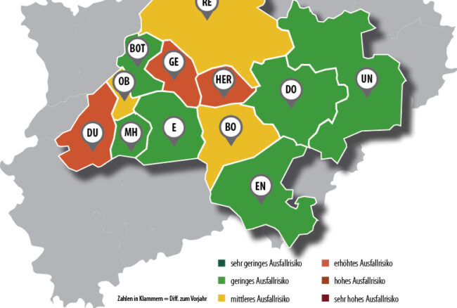 Das Ausfallrisiko ist bundesweit rückläufig. Im Ruhrgebiet ebenso – wenn auch auf hohem Niveau.