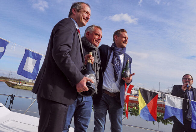 Schiffstaufe im Rahmen der Grundsteinlegung für neue Stölting-Hauptverwaltung