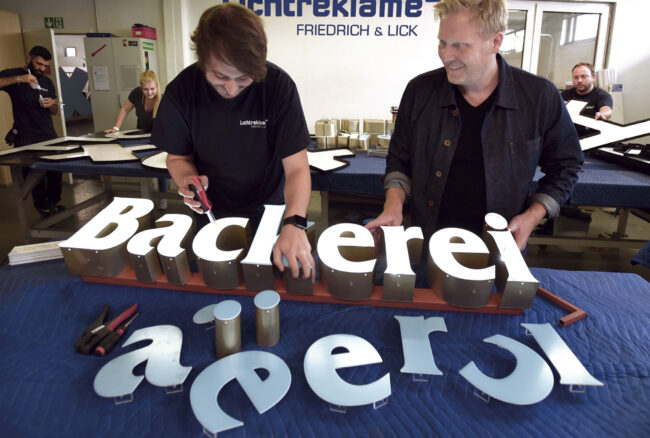 Leuchtwerbung ist ein Hingucker. Werbetechniker kümmern sich darum, dass sie auch funktioniert, aktuell ohne Meisterpflicht. Doch das könnte sich bald...