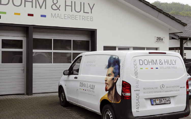 Dohm & Huly steht für qualitativ hochwertige handwerkliche Leistungen, die mit Kreativität ganz im Sinne der individuellen Kundenvorstellungen umgesetzt werden. Das Portfolio umfasst beispielsweise klassische Tapezier-, Maler- und Lackierarbeiten, Industrieanstriche, Fassadensanierungen, energetische Sanierungen, ökologische Fassaden- und Innenraumgestaltungen, Balkon- und Betonsanierungen, Wand- und Deckengestaltungen, Verlegung von Bodenbelägen und Bodenbeschichtungen. So aufgestellt, sei der Betrieb in der Lage, von der kleinen Wohnung bis zum Großprojekt alle Anforderungen zu bewältigen. Das Jobcenter und die neue Polizeiwache Velbert, ein produzierendes Unternehmen in Wuppertal, die Justizvollzugsanstalt Wuppertal oder sieben Wohnkomplexe der Baugenossenschaft Niederberg mit über 150 Einheiten wurden beispielsweise in der jüngeren Vergangenheit bewältigt. Mit einem Velberter Hersteller von weltweit ausgelieferten Flugzeugsimulatoren besteht eine langfristige Kooperation für die notwendigen Lackierarbeiten. Für die Fahrt zu den Baustellen stehen zwölf firmeneigene Fahrzeuge zur Verfügung.