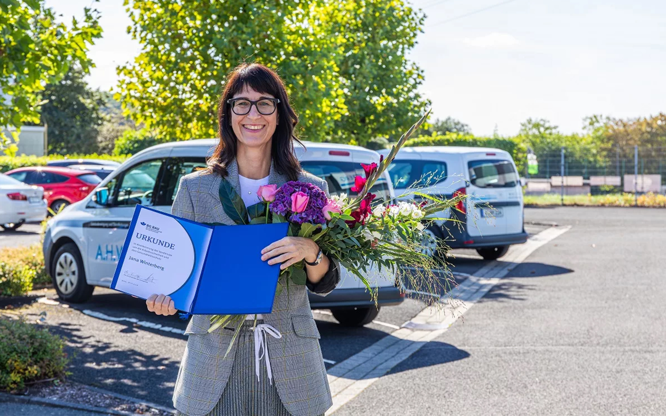 Geschäftsführerin Jana Winterberg wurde Anfang Oktober von der Berufsgenossenschaft Bau mit der Silbermedaille für „Vorbildliche Leistung – Sicherheit am Bau“ ausgezeichnet.