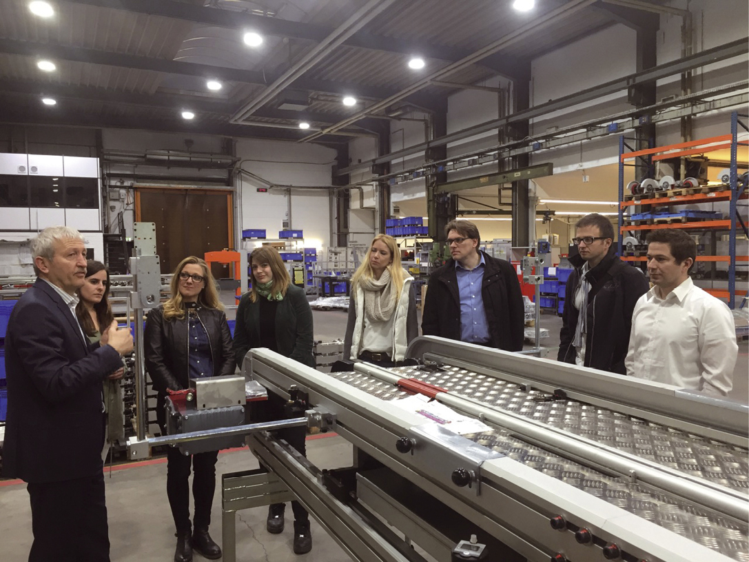 Mehr als 20 Mitglieder waren Ende März der Einladung der Wirtschaftsjunioren (WJ) Niederberg zu Tünkers Maschinenbau in Ratingen gefolgt. Der Marketing-Verantwortliche Christoph Kirschner gab einen kurzen Überblick über das weltweit tätige Unternehmen und einen Einblick in die Werkshallen. Tünkers Maschinenbau produziert alles rund um den Rohkarosseriebau der Automobilindustrie. Dabei deckt Tünkers die komplette Bandbreite einer Produktionsstraße ab: Spannen, Positionieren, Greifen, Umformen, Schweißen, Fördern, Transportieren, Drehen, Dosieren und Kleben. Und die Produktvielfalt der Automobilindustrie ist gleichzeitig auch der Garant für das Fortbestehen des Ratinger Familienunternehmens. Denn jedes neue Modell benötigt auch eine neue Produktionsstraße. Nahezu alle namhaften Automobilhersteller der Welt bauen auf und mit Tünkers-Produkten. „Andere Branchen als unsere Kernkundschaft zu erschließen, hat sich in der Vergangenheit immer wieder als sehr schwierig erwiesen“, berichtet Kirschner. „Dennoch versuchen wir immer wieder, auch andere Märkte im Blick zu halten.“ Und so findet man die Unternehmensmarke hier und da auch außerhalb der automobilen Produktionshallen. Der Slogan „Erfindergeist serienmäßig“ ist keine hohle Phrase: Tünkers hält weltweit aktuell zirka 350 Patente. Angefangen hatte alles mit der Unternehmensgründung und einem ersten Patent in den frühen 1960er Jahren. Für Ford entwickelte Tünkers einen „Kniehebelspanner“. Auf diesem relativ kleinen Bauteil fußt die gesamte Firmengeschichte bis hin zum heutigen Global Player. Die Spanner werden heute noch, in inzwischen vielen Größen und Variationen, komplett in Ratingen gefertigt.