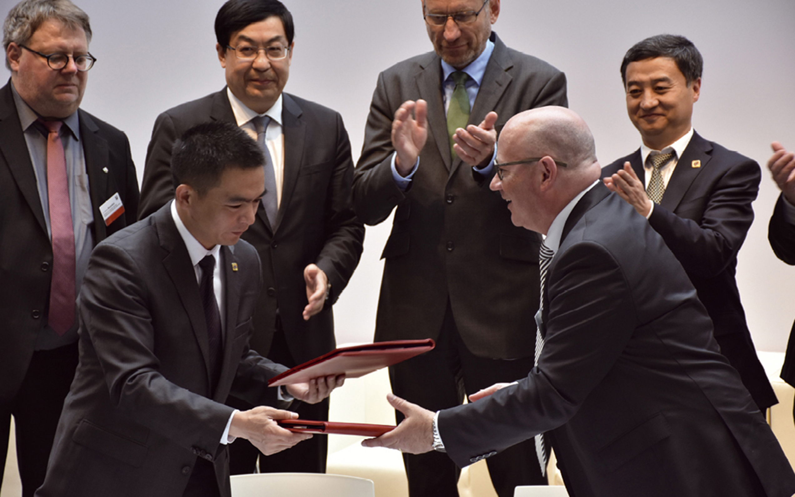 Austausch und Zusammenarbeit – das besiegelten Ende April die China International Investment Promotion Agency und die Bergische Struktur- und Wirtschaftsförderungsgesellschaft (BSW) für das Automotive-Cluster Bergisches Städtedreieck auf der Hannover Messe. Beide Seiten unterzeichneten die Deutsch-Chinesische Automotive-Allianz. Seit dem ersten Deutsch-Chinesischen Automobilkongress im September 2017 in Wuppertal befinden sich beide Seiten in intensivem Austausch. „Absichtserklärung über die partnerschaftliche Zusammenarbeit und die gemeinschaftliche Gründung einer Deutsch-Chinesischen Automotive-Allianz“ lautet der genaue Titel der Vereinbarung, die Stephan A. Vogelskamp, Geschäftsführer der BSW, und Yaojun Xu, Direktor der China International Investment Promotion Agency (CIPA) – eine Einrichtung des chinesischen Handelsministeriums – unterzeichneten. Ziel der Allianz ist es, die chinesischen und deutschen Automotive-Netzwerke regelmäßig zusammenzubringen und somit bilaterale Projekte und Investitionen zu fördern. Wichtig ist in dem Zusammenhang der Anschluss an den wachsenden Markt in China. „Auf diese Weise entsteht eine Plattform für einen fachlichen Austausch. Für den Aufbau des Automotive-Clusters Bergisches Städtedreieck und eines NRW-Clusters erhalten wir somit einen wichtigen Input, wir sind den existenten Kooperationen dankbar“, so Stephan A. Vogelskamp. Die Verbindungen des Städtedreiecks in die Volkrepublik China sind zurückzuführen auf das China Competence Center bei der Wirtschaftsförderung Wuppertal. Seit Jahren schon werden dort Kooperationsprojekte vorangetrieben. So hat die Wirtschaftsförderung Wuppertal auf der Hannover Messe die Initiierung eines Deutsch-Chinesischen Technologie-Inkubators beschlossen, um Technologiestartups zu fördern und den Austausch von Unternehmen zu unterstützen.