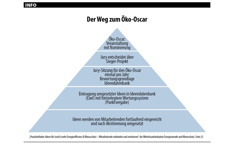 Der Weg zum Öko-Oscar ( „Praxisleitfaden-Ideen für (noch) mehr Energieeffizienz & Klimaschutz – Mitarbeitende einbinden und motivieren“ der Mittelstandsinitiative Energiewende und Klimaschutz, Seite 23)