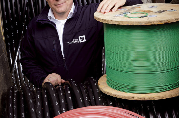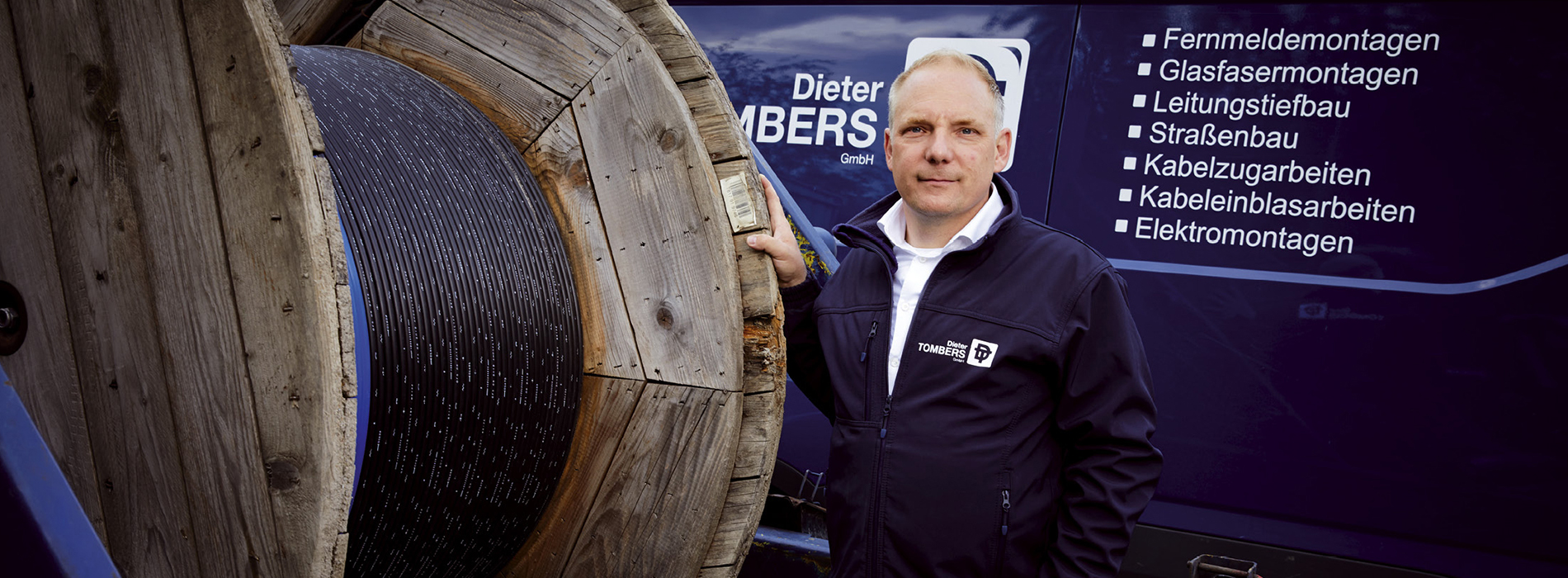 Es gibt wohl kaum eine Branche, in der die Gleichzeitigkeit von Technik-Geschichte und modernsten Innovationen so offensichtlich ist wie in der Telekommunikationstechnik, dem täglichen Geschäft der Dieter Tombers GmbH aus Ratingen. Wurden die einzelnen Kupferleitungen der Telefonkabel in der Fernmelde-Gründerzeit zu Beginn des letzten Jahrhunderts noch mit Papier ummantelt, so sind die heute im Breitbandzeitalter zu verlegenden Glasfaserleitungen mit mehreren Tausend Verbindungen pro Kabel wahre Wunderwerke der Fernmeldetechnik. Selbst ein modernes Kupferkabel verfügt bereits über bis zu 4.000 Einzeldrähte in einem Kabelstrang, der einen Durchmesser von weniger als zehn Zentimetern umfasst. Mit beiden Welten haben es die Monteure der Firma Tombers beinahe täglich zu tun, denn die kontinuierliche Modernisierung des historischen Fernmeldenetzes und ihr unermüdlicher Ausbau zur Highspeed-Datenautobahn ist in der Region zwischen Düsseldorf und der nördlichen Stadtgrenze von Köln sowie zwischen Jüchen und Wuppertal die Aufgabe von Daniel Tombers und seinen Tiefbau-Teams.