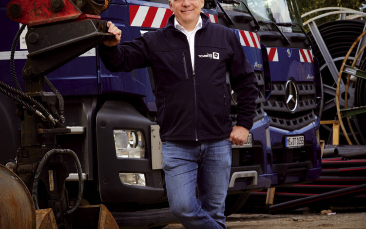 Seit etwa zehn Jahren ist das Unternehmen aber auch noch auf einem zweiten Standbein stark – dem Versorgungsleitungstiefbau. Große Versorgungsunternehmen der Region wie die Netzgesellschaft Düsseldorf oder die Stadtwerke Ratingen setzen auf die Dieter Tombers GmbH als Rahmenvertragspartner. „Für diese Kunden errichten wir in den Städten Gräben für die Gas-, Wasser-, Strom- und Fernwärmetrassen.“ Auch die Instandhaltung des öffentlichen Beleuchtungsnetzes der Stadt Düsseldorf fällt mit in die Zuständigkeit von Tombers, wobei hier auch schon mal Straßenlaternen bis in eine Höhe von 30 Metern ausgewechselt werden müssen.