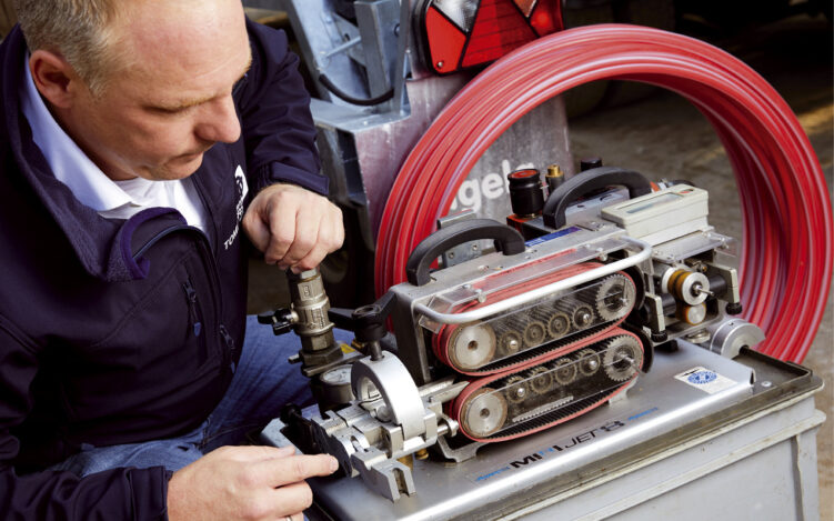 Bei den extrem leichten Glasfaserkabeln ist die Technik heute schon so weit, dass sie über mehrere Kilometer in vorverlegte Leerrohre eingeblasen werden können. Mit diesem Know-how und den bis zu 30.000 Euro teuren Spezialgeräten ist die Dieter Tombers GmbH hier auf dem modernsten Stand der Technik. Um sich auf künftige Netzerweiterungen vorzubereiten, werden heute aber schon regelmäßig zusätzliche Leerrohre verlegt, die Reserve-Kapazitäten vorhalten.