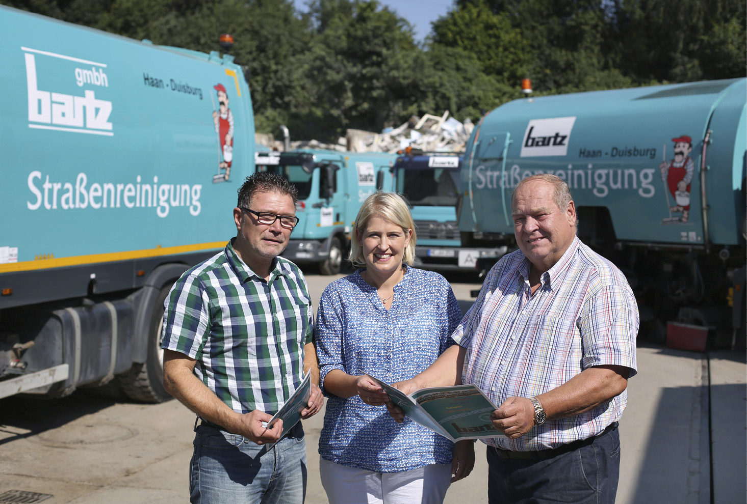„Besonders wichtig ist uns ein gutes Betriebsklima“, sagt die Juniorchefin. Deshalb versucht das Führungsduo, ein angenehmes Arbeitsumfeld für die Mitarbeiter zu schaffen, die ihnen dieses Engagement mit hervorragender Arbeit und Treue danken; immerhin sind einige von ihnen schon seit mehr als 20 Jahren in der Firma tätig. „Außerdem bilden wir Bürokaufleute und Berufskraftfahrer aus“, so die Diplom-Ökonomin, die selbst IHK-Prüferin ist. „Wir alle arbeiten letztendlich für eine lupenreine, umweltfreundliche Entsorgung“, fügt Hans-Peter Bartz hinzu. Großen Wert legt er übrigens auch auf blitzblanke Fahrzeuge und Container; Rost oder Dreck sucht man an den türkisfarbenen Lkw deshalb vergebens. „Abfall muss schließlich nicht schmutzig sein.“