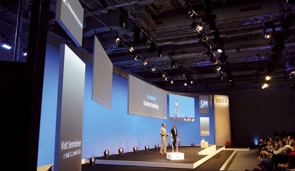 Bei der jährlichen internationalen Pressekonferenz auf der IFA, der führenden Messe für Consumer Electronics und Home Appliances, ist die Aventem GmbH für die technischen, logistischen und setbaulichen Aufgaben verantwortlich. „Seit 2009 arbeiten wir mit der IFA zusammen“, berichtet Holger Niewind, Geschäftsführer von Aventem. „30 Techniker und Setbauer haben wir für Bild, Ton, Lichttechnik sowie für den Deko- und Setbau im Team“, sagt Niewind weiter. Umgesetzt hat das Team das Setdesign der Pressekonferenz, die Produktausstellung, das Wegeleitsystem, die Deko und weitere Kreativleistungen. Ein Highlight der Pressekonferenz: Hier konnten während der laufenden Präsentation die Journalisten Fragen zu den Produkten stellen, die unmittelbar in die dreidimensionale Medientechnik der Pressekonferenz einflossen. Auch wenn es um Groß-Events, TV-Produktionen oder Messeauftritte geht, sind die audiovisuellen Dienstleistungen des Hildener Unternehmens gefragt. Dabei beschränken sich die Dienstleistungen nicht nur auf die klassischen veranstaltungstechnischen Lösungen hinsichtlich Licht-, Bild- und Tontechnik. Auch in der gesamtheitlichen Umsetzung der Projekte ist Aventem ein professioneller Ansprechpartner. „Wir verleihen nicht nur die Technik, wir unterstützen unsere Kunden darin, aus ihren Events ein Erlebnis zu machen“, sagt Niewind. Und das fängt bereits bei der Beratung während der Konzeptionsphase an und führt über die Durchführung der behördlichen Genehmigungen und der geeigneten Location-Suche zum Event. Die Kunden sind hauptsächlich Agenturen, Medien und Industrieunternehmen, die das moderne Equipment und das professionelle Know-how europaweit in Anspruch nehmen. Dabei reicht die Größe der Veranstaltungen von Konferenzen mit 15 Teilnehmern bis zu Open-Air-Veranstaltungen mit 50.000 Menschen, bei Aventem wird jede Veranstaltung mit dem gleichen Anspruch betreut. Selbst wenn der Zeitrahmen eng gesetzt ist, schafft Aventem die Herausforderung mit Bravour, wie beispielsweise bei dem FAMAB Award 2014 im Essener Colosseum Theater. „1.500 Gäste erleben herausragende Markenerlebnisse und Architektur – 2014 waren wir Platin-Sponsor der Veranstaltung und für die komplette Licht- und Tontechnik sowie das Rigging verantwortlich“, so Niewind. Für den Showteil selbst waren bis zu 32 Drahtlosanlagen zeitlich im Einsatz. Technik, die der normale Besucher nicht mitbekommt – zumindest nicht, wenn sie so einwandfrei funktioniert wie bei diesem Event. Auch bei TV-Produktionen ist Aventem ein zuverlässiger Partner mit professionellen Mitarbeitern und Know-how. Das Equipment reicht vom Mikrofon bis zum Scheinwerfer und ist zum Teil speziell für die TV-Aufzeichnungen ausgewählt. 2005 gegründet, hat das Unternehmen heute 41 feste Mitarbeiter und arbeitet mit bis zu 160 Mitarbeitern zusammen. Und das Wachstum geht weiter. „Das stetige Wachstum setzt sich aufgrund der von unseren Kunden geschätzten Leistungsqualität durch“, berichtet Niewind. „Aktuell haben wir ein neues Firmengelände in Hilden erworben und errichten auf 12.000 Quadratmetern neue Büros und Lagerflächen sowie Werkstätten.“